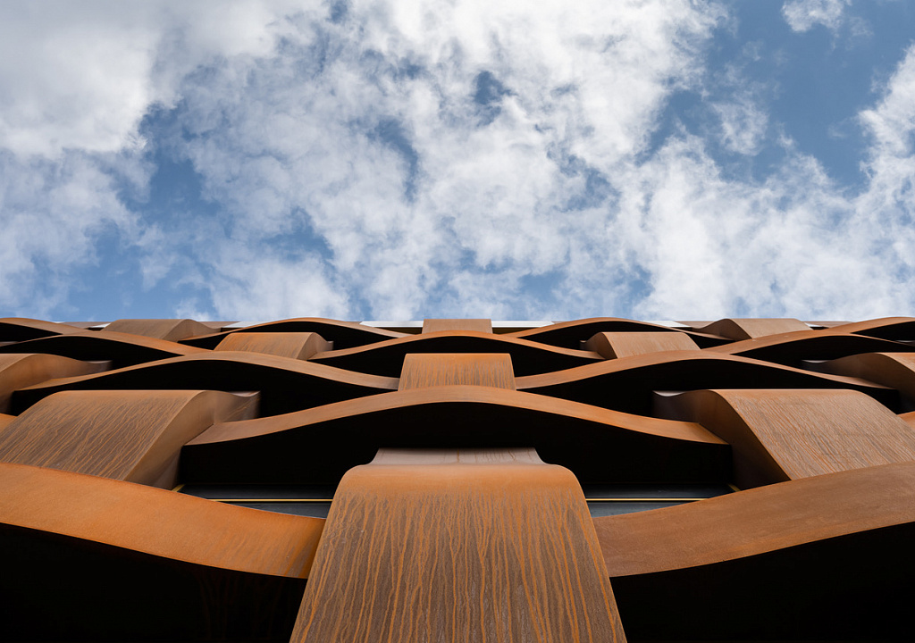 Сама форма напоминает тупой угол, галочку. На фасаде внешней стороны здания красуются рисунки художника, в честь которого оно получило свое название, а на обратной стороне изображен увеличенный фрагмент одного из его произведений. Такое здание привлекает внимание и уже стало одним из выдающихся архитектурных объектов города. Эффектная облицовка днем создает непередаваемую картину ночью, когда включается подсветка. Внутренний интерьер также не остается в стороне. Большие, светлые помещения, аккуратный изысканный стиль, современный дизайн разбавляют креативные вставки предметов интерьера в ресторанах и кафетериях.