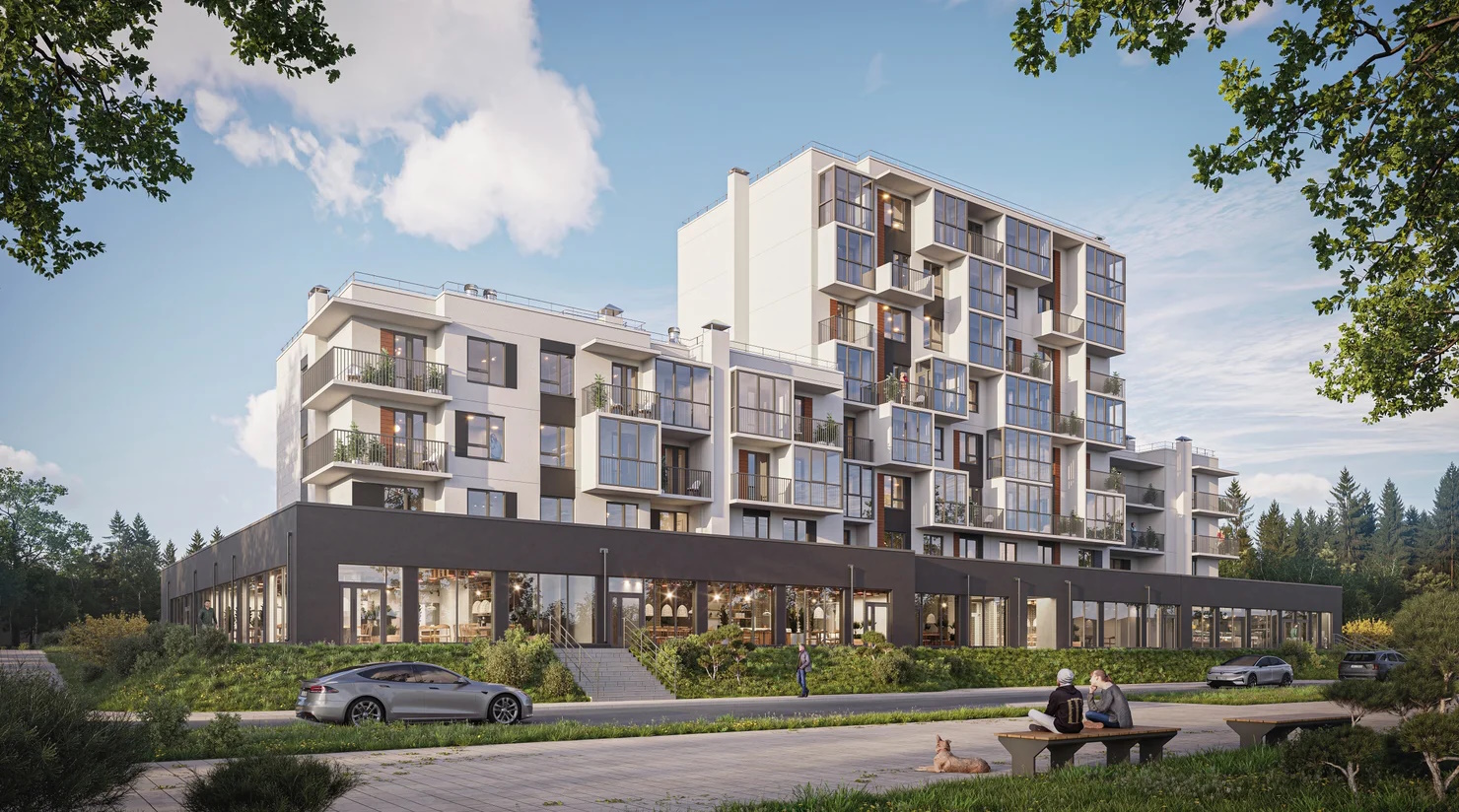 Архитектурная концепция — единение природы и города. Она вдохновлена жизнью в современных скандинавских домах. Образ напоминает силуэты прибрежных скал: множество балконов на нижних этажах сменяются окнами в пол на верхних.