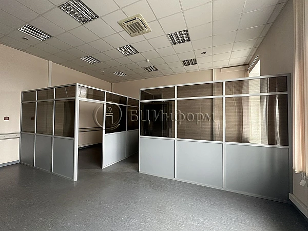 Кабинетная планировка -7 кабинетов, Большой кабинет разделен стеклянными перегородками (не в потолок).