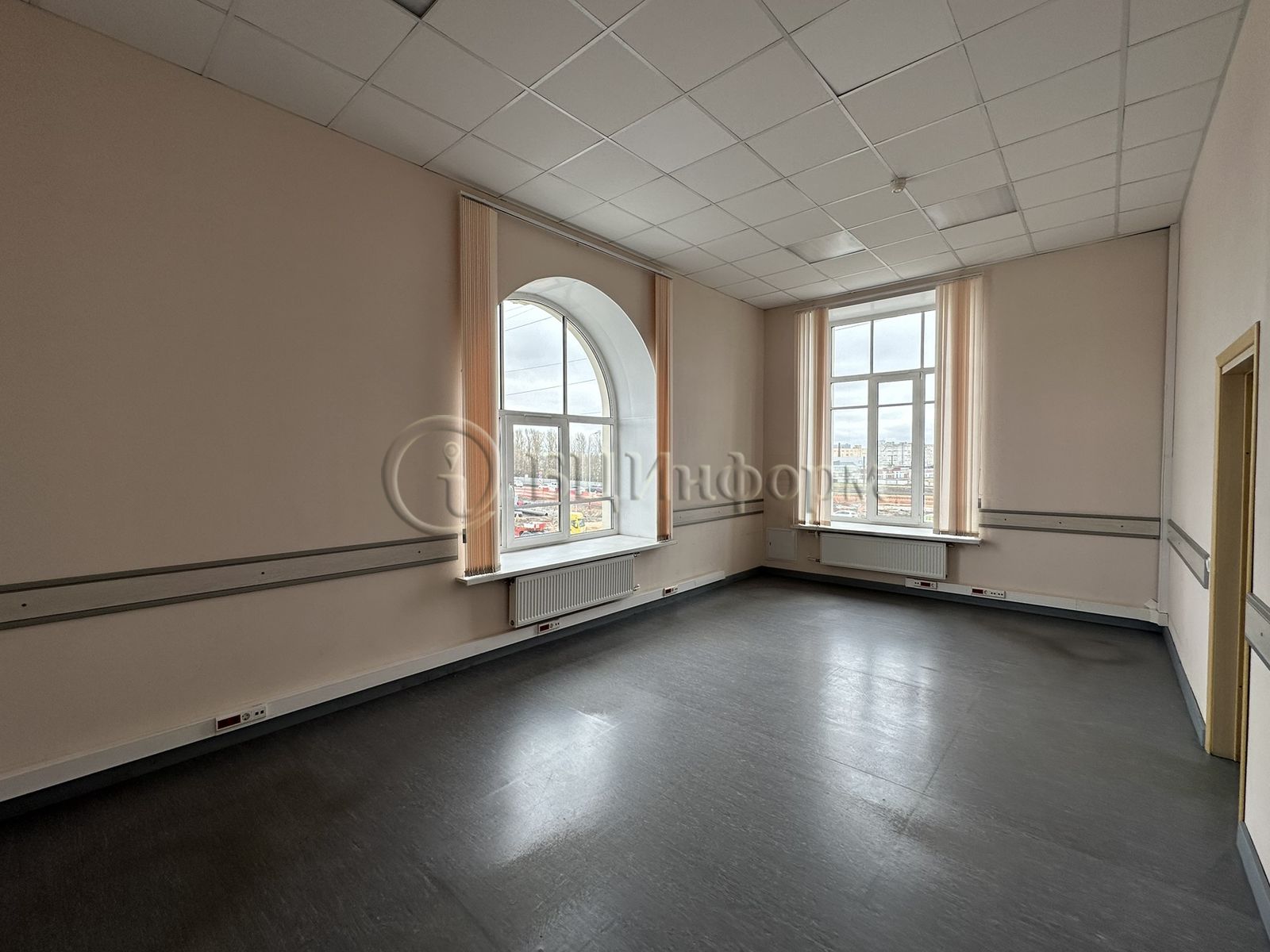 Помещения с высокими потолками 4м, большие окна, очень светлые помещения.
