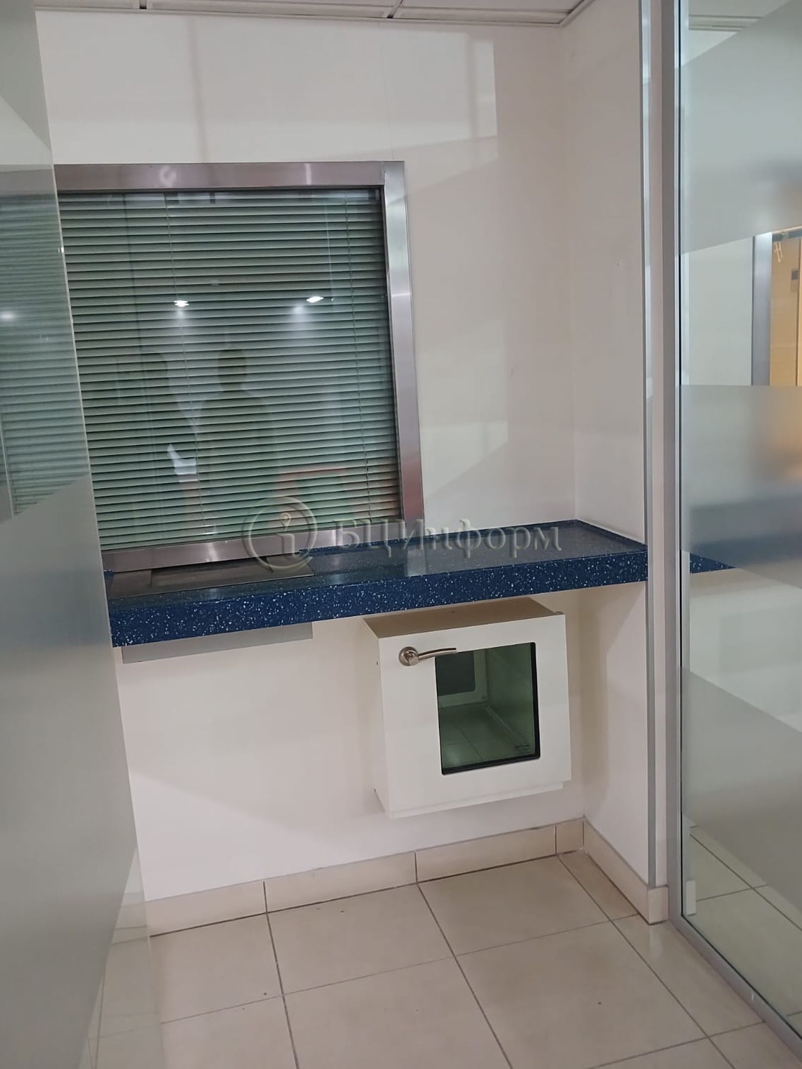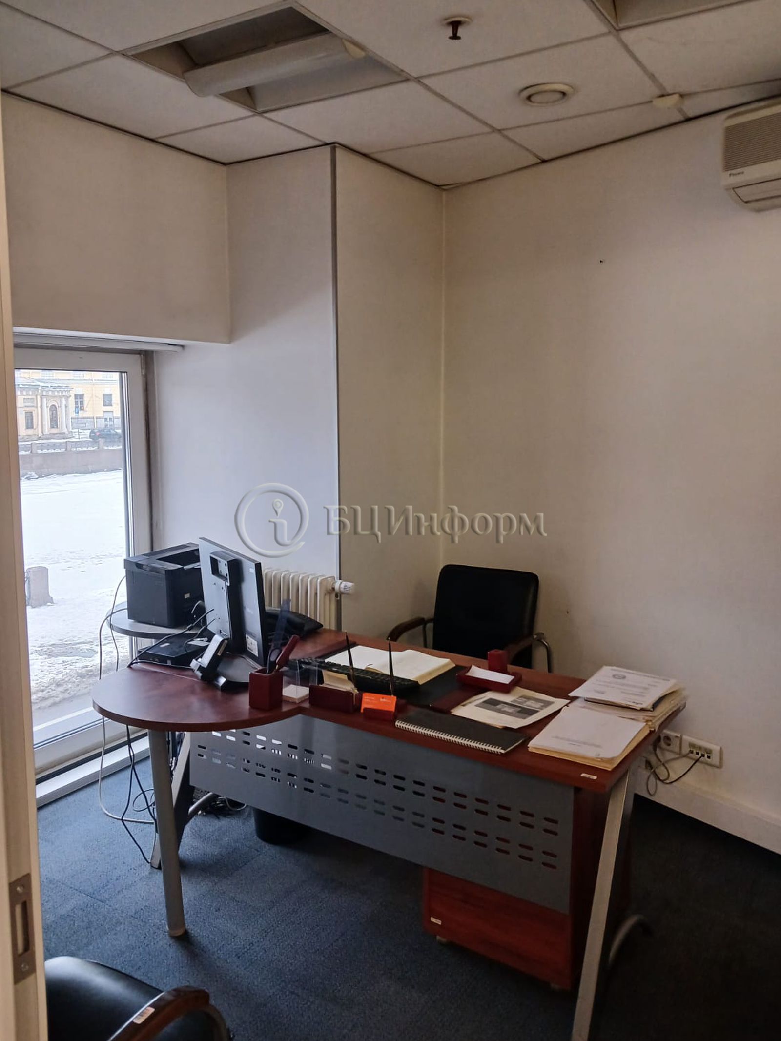 Выполнена стандартная отделка: потолок "Армстронг", стены - покраска, напольное покрытие - плитка/ковролин/ламинат.