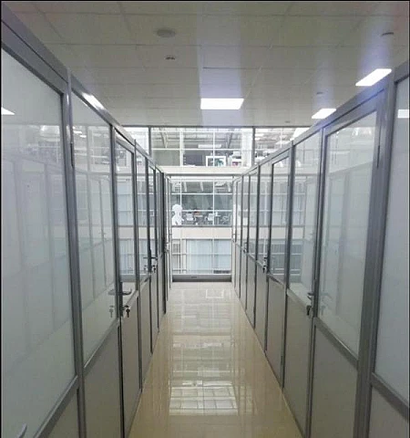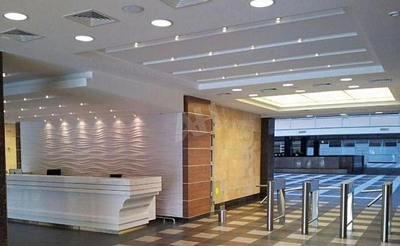 Стандартная офисная отделка: стены - обои/покраска, потолок "Армстронг".