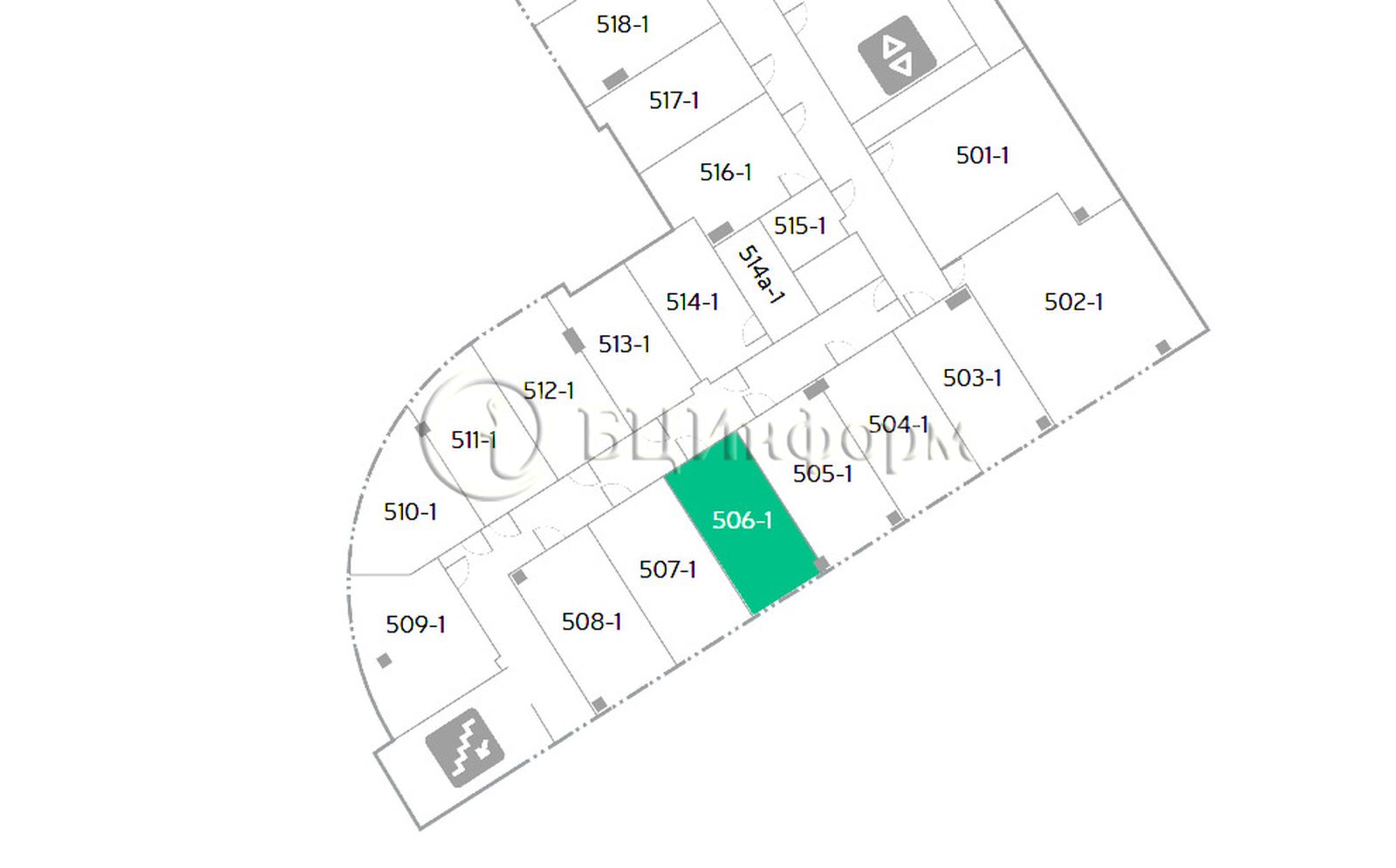 Расположено на пятом этаже.