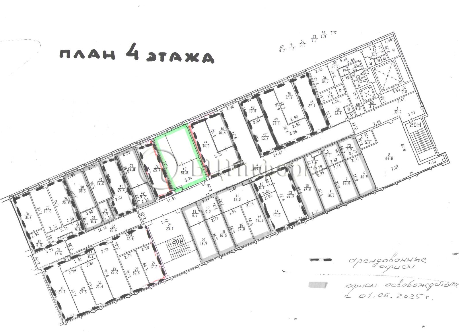 Вниманию арендаторов предлагается помещение под офис, площадь - 54 м.кв.