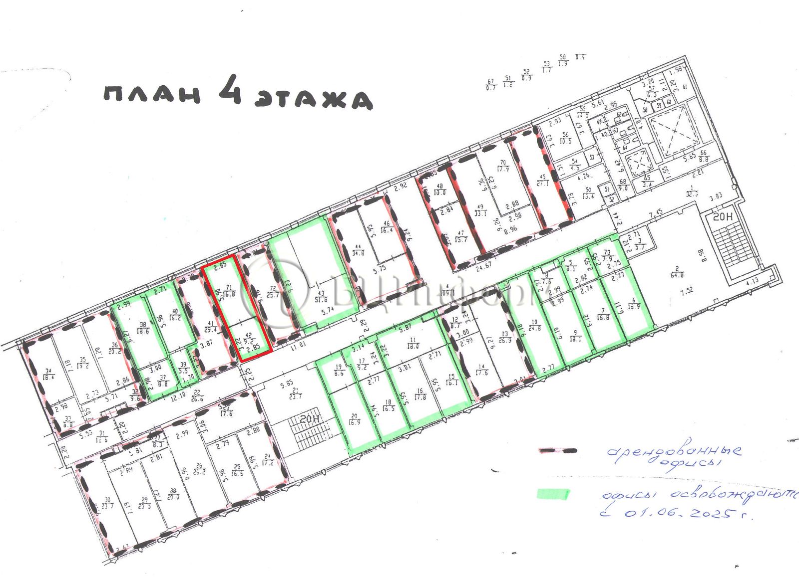 Вниманию арендаторов предлагается помещение под размещение офиса, площадь - 27 м.кв.