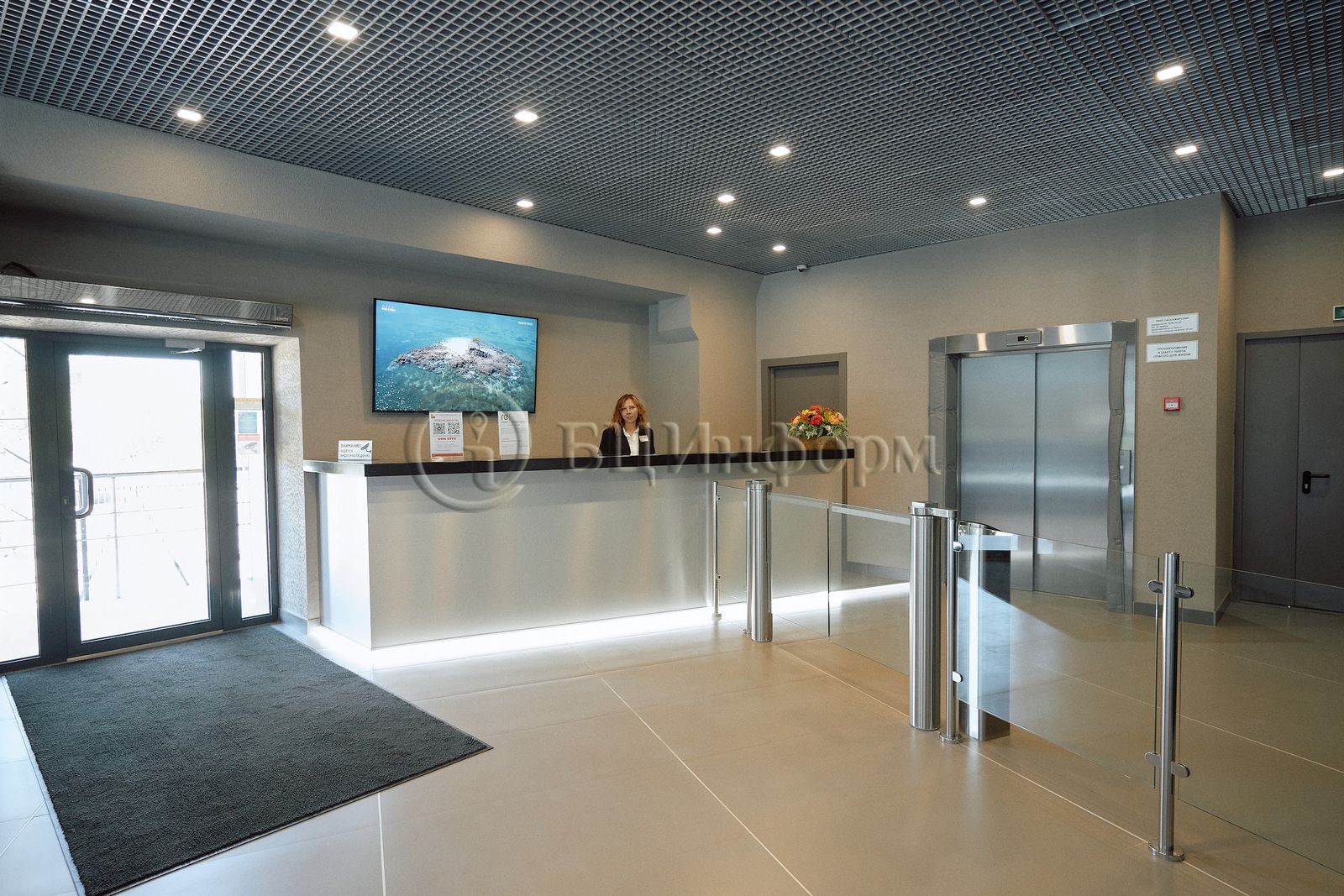 Выполнена качественная офисная отделка: двери - эко-шпон; потолки: подвесные типа «Армстронг»; стены - окрашенный гипсокартон; напольное покрытие - ламинат.