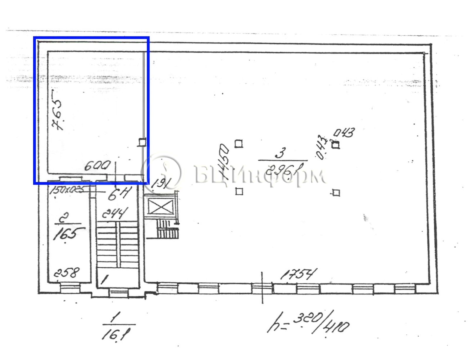 Единое пространство. Высота потолка - 3.2 м. Широкая входная дверь.