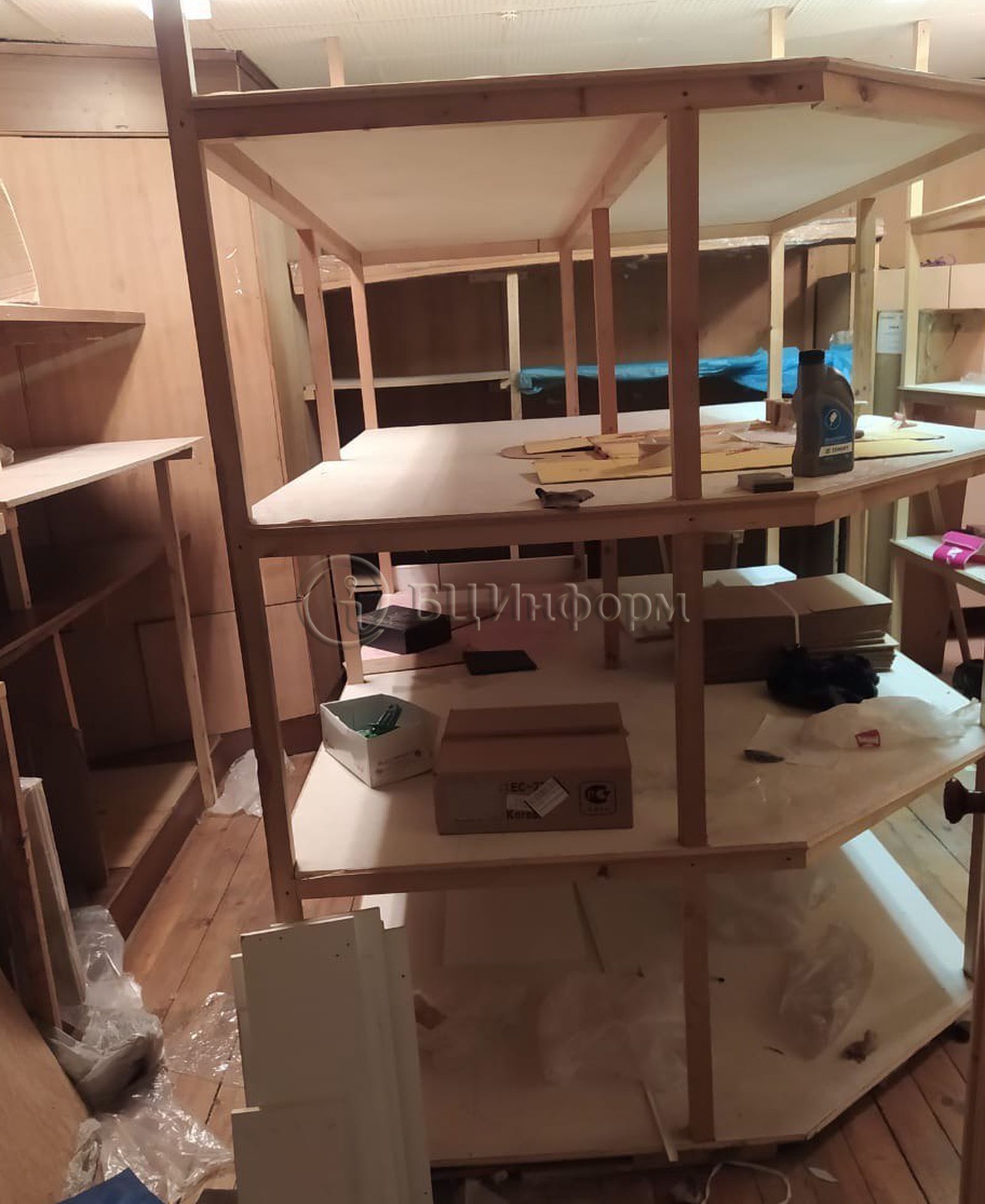Кабинетная планировка: склад со стеллажами (без окон), помещение под кухню, с/у с душевой, просторная комната открытой планировки. Подойдет под офис, пункт выдачи интернет-магазина, сферу услуг.