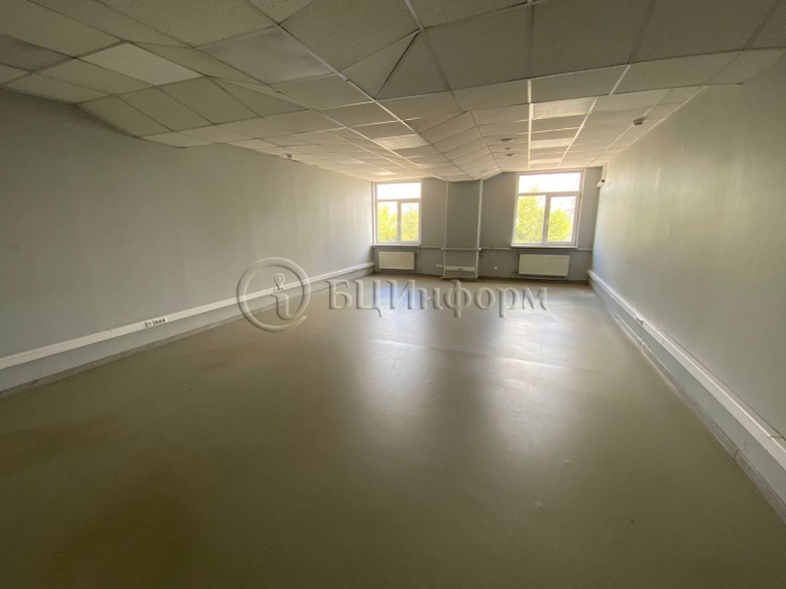 Выполнена стандартная офисная отделка: стены - окрашенные обои, потолок подвесной типа "Армстронг", напольное покрытие - линолеум.