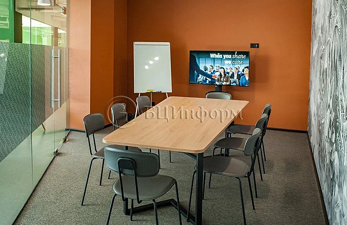В хорошем состоянии. Сдается с мебелью. Помещение оборудовано переговорными, кухней, блоком санузлов.
