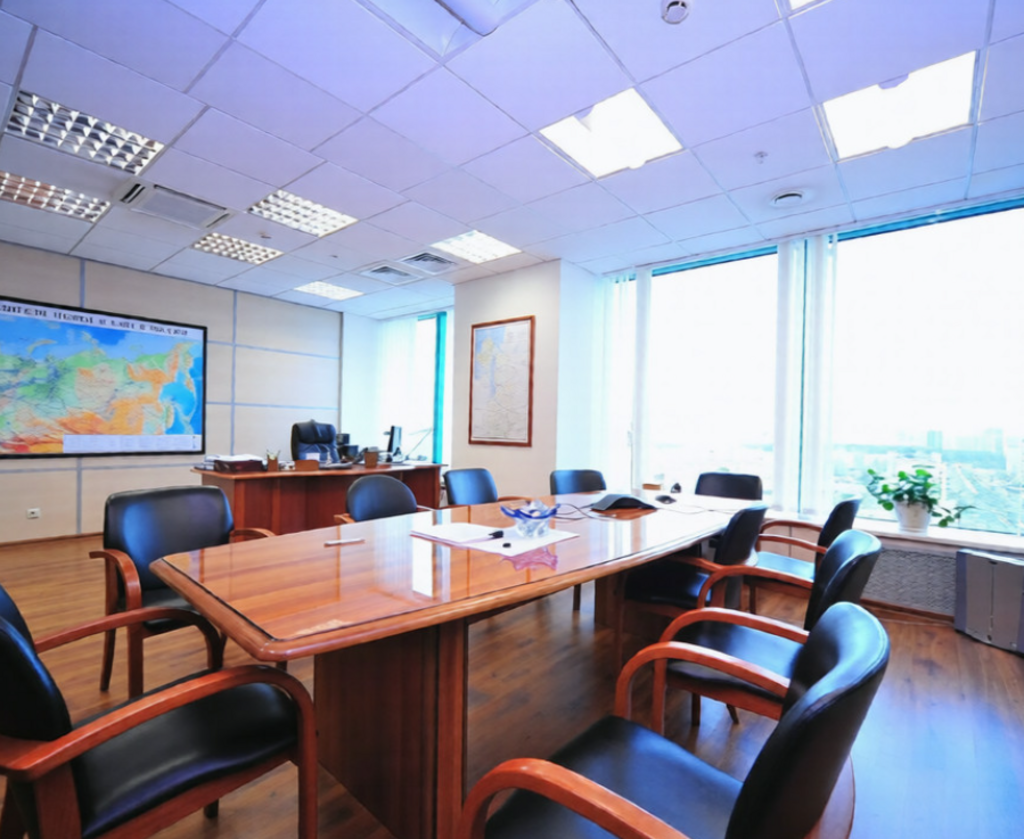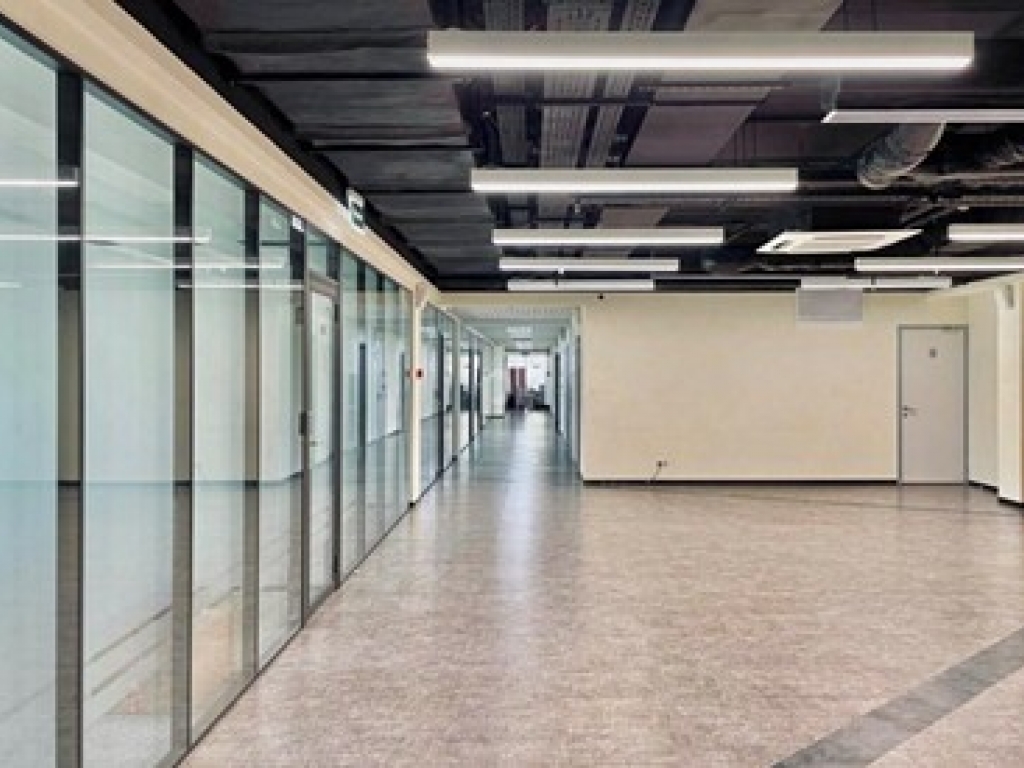 Помещение сочетает в себе как компактные рабочие зоны, так и просторные кабинеты, подходит для размещения крупной команды.