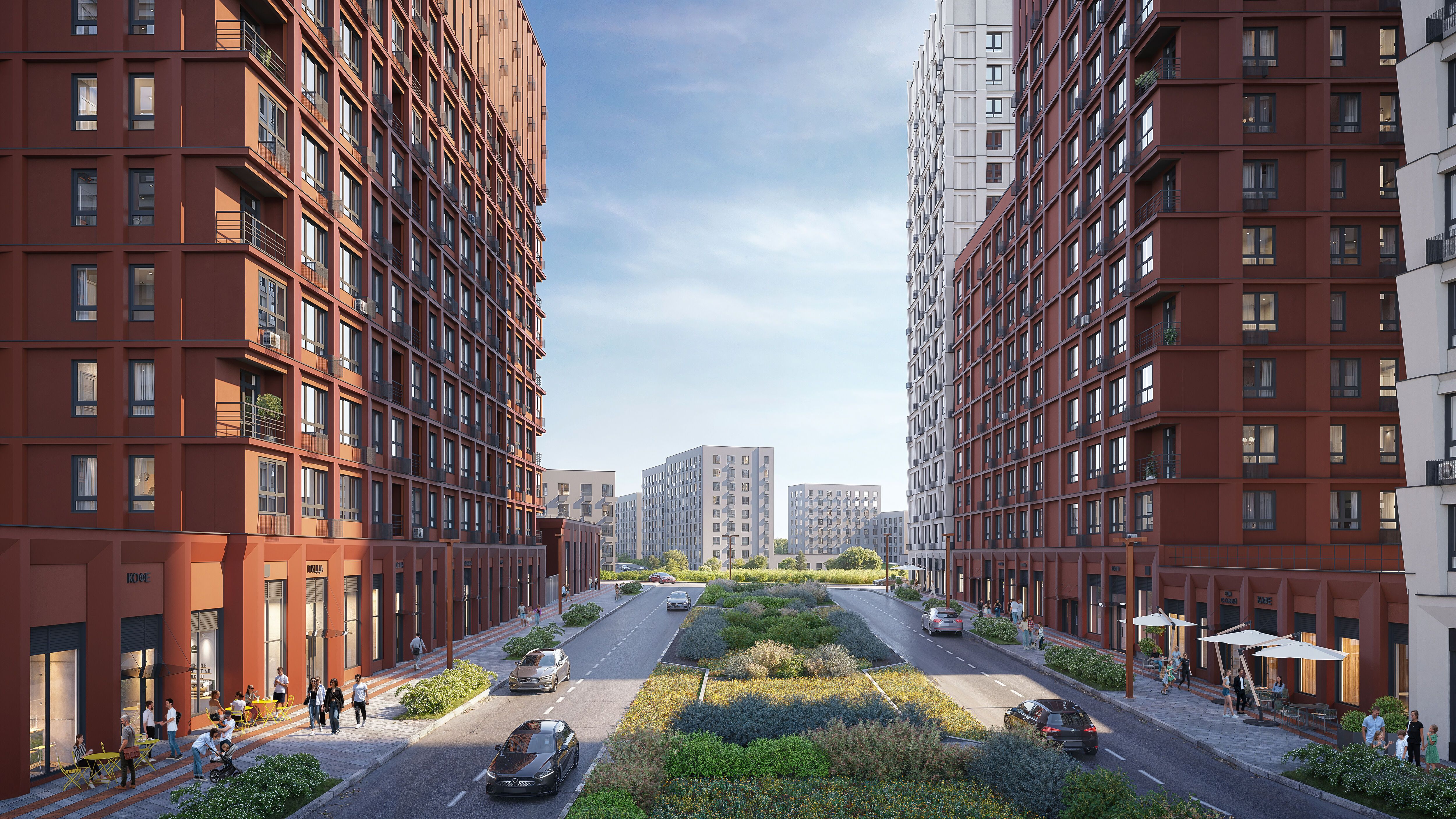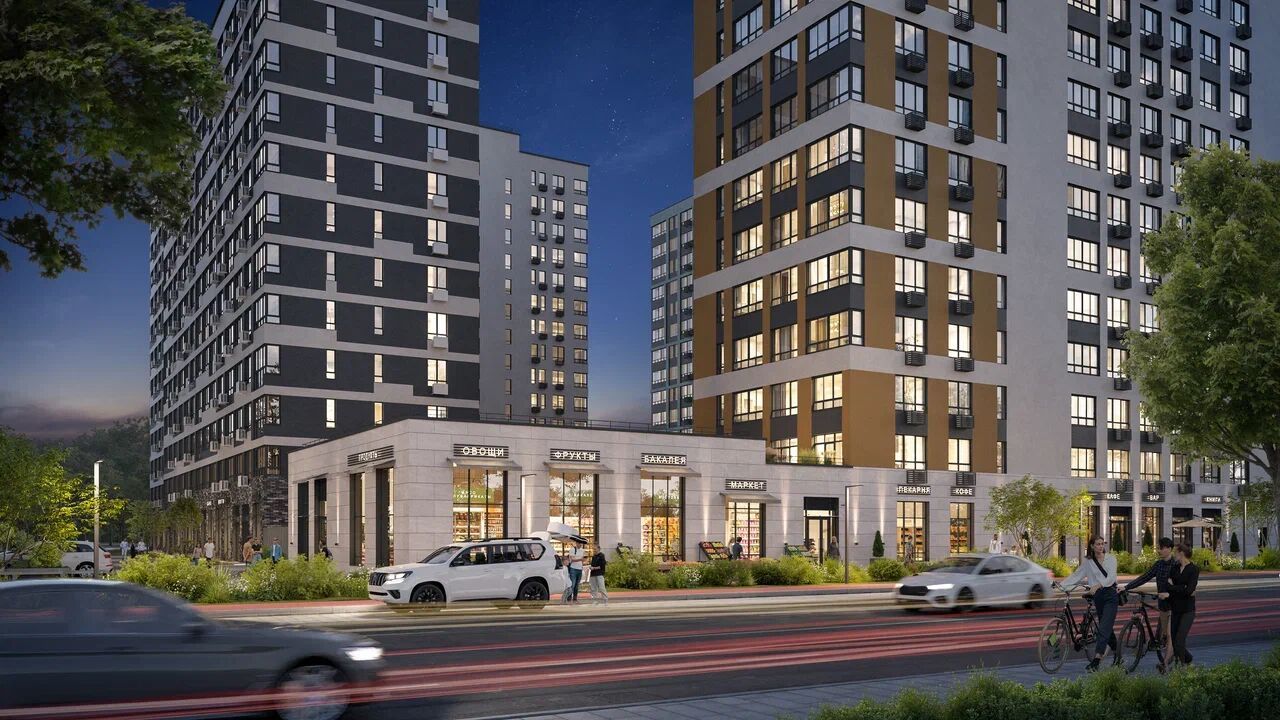 Малоэтажный квартал, состоящий из жилых домов высотой 5 этажей. Фасады выполнены в теплых оттенках бежевого и терракотового спектра. Парапеты домов имеют уклоны, фасады украшают декоративные пояса, а под окнами располагается рустовка. Описание помещения: В блоке 2 входа.