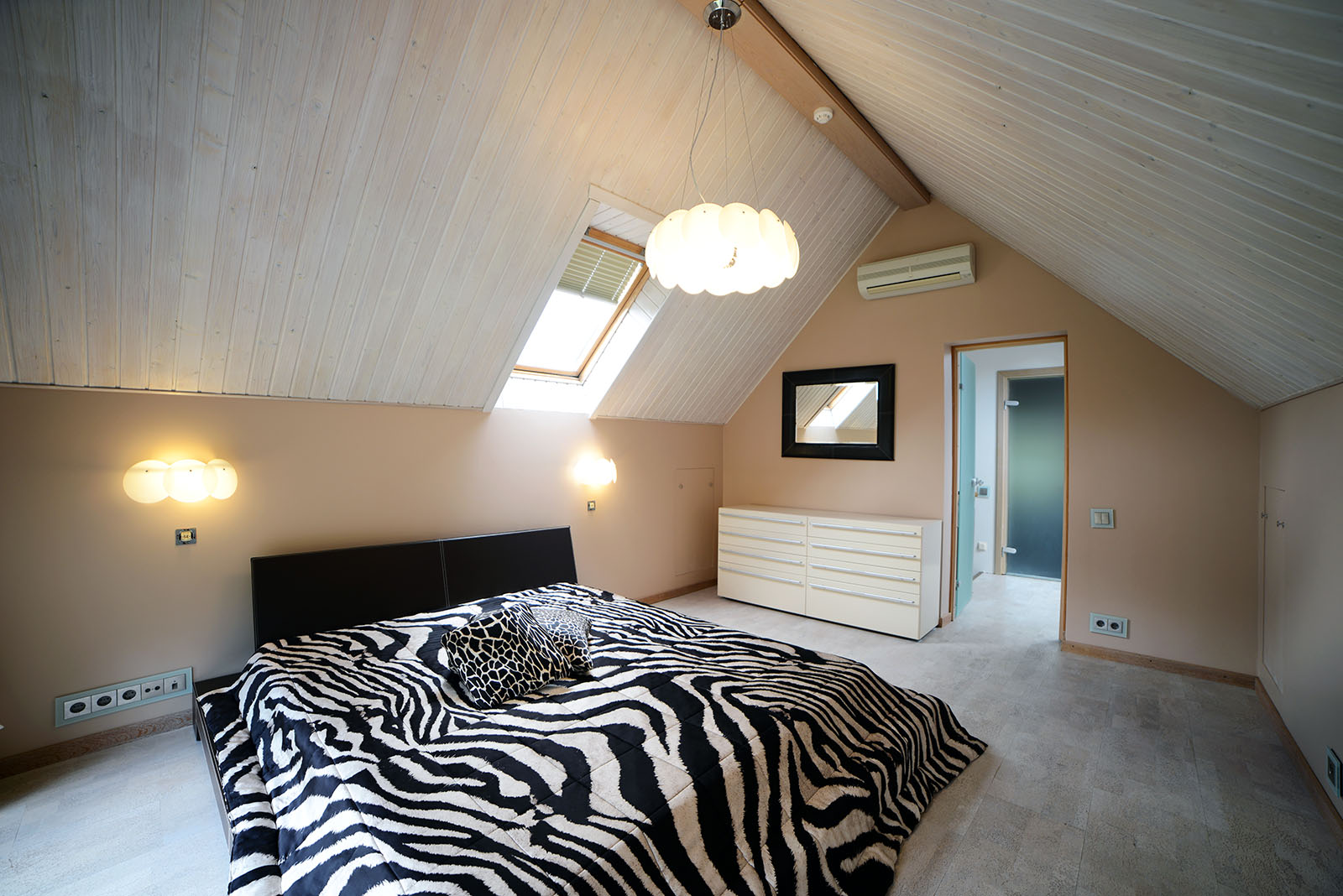 На первом и втором этаже оборудовано два совмещенных санузла – один с душевой кабиной, другой с ванной и подогревом пола. В доме есть две вместительные гардеробные.