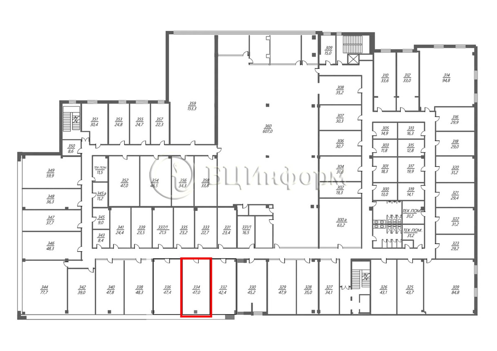 В аренду предлагаются помещения под офис площадью от 42.4 м.кв.