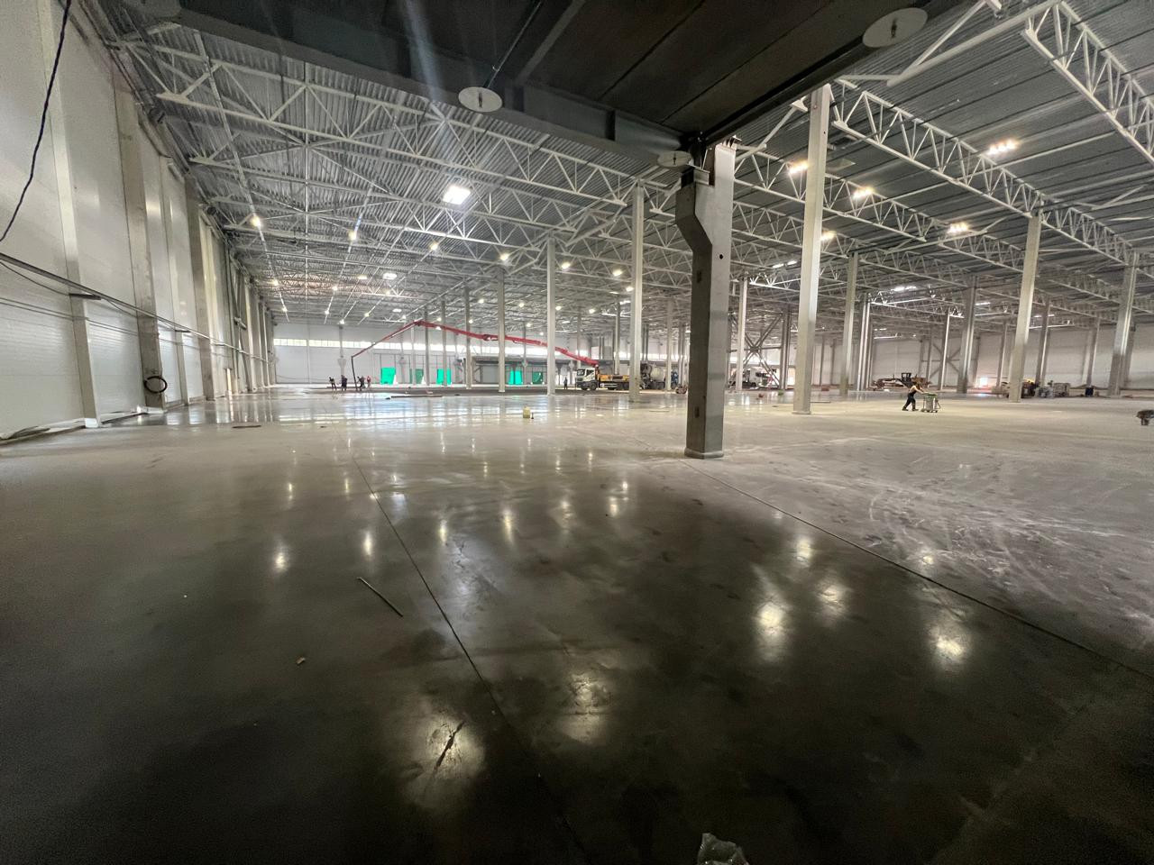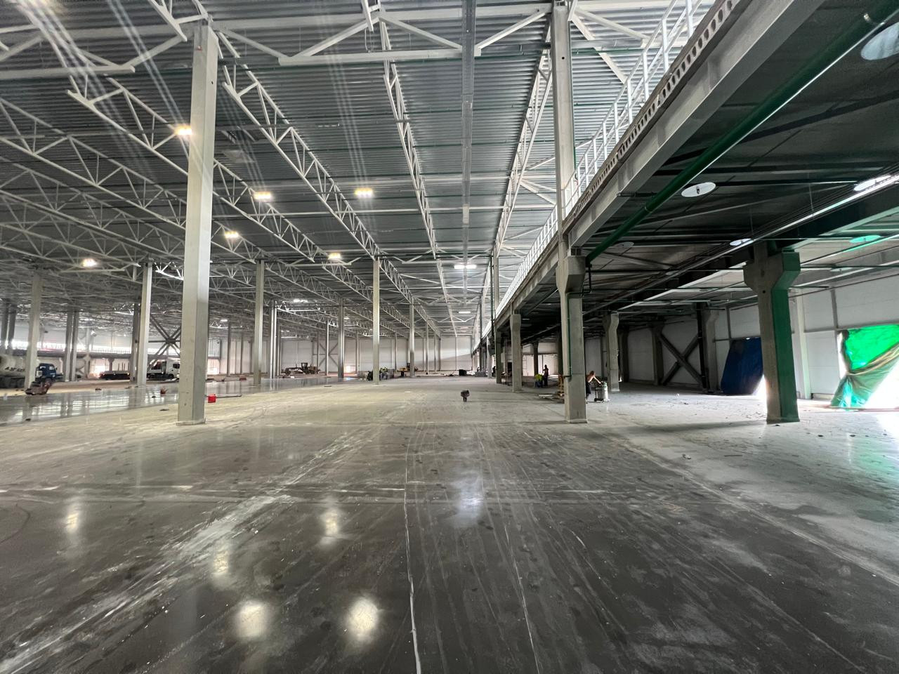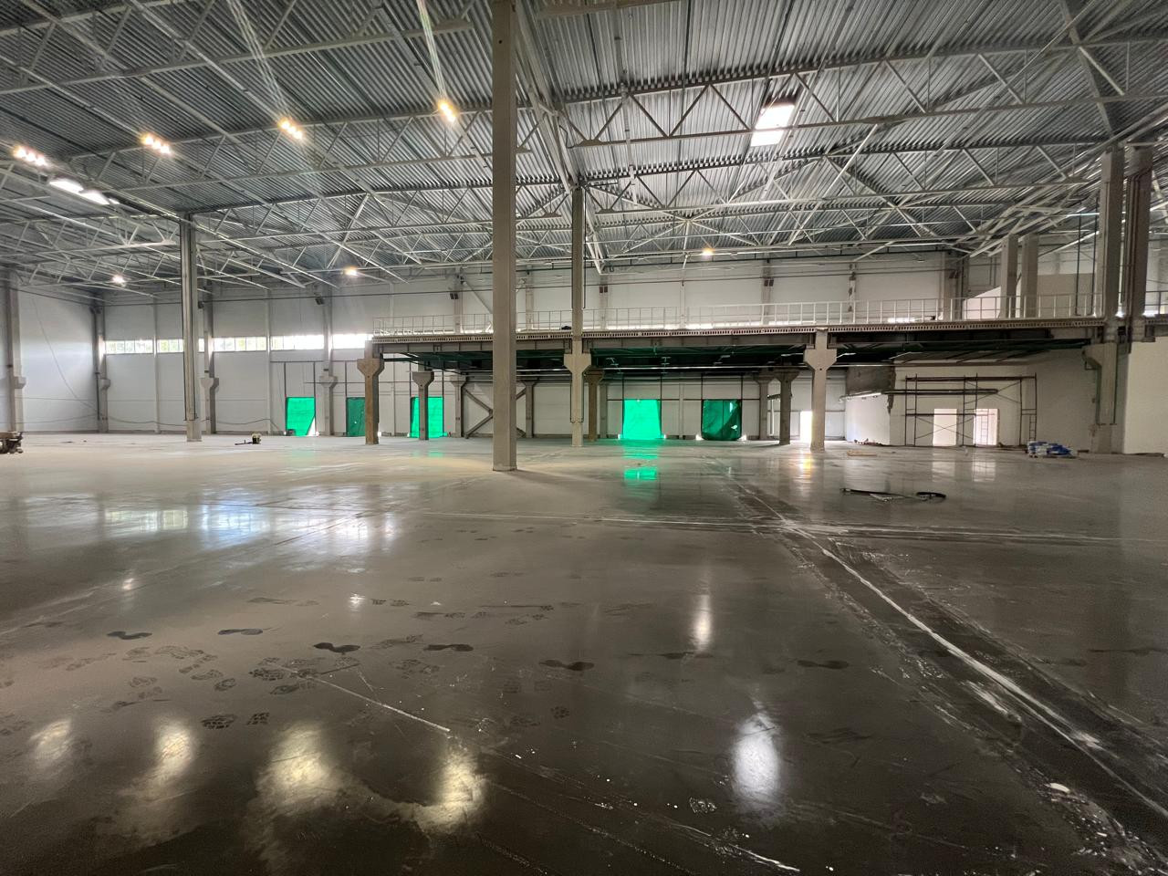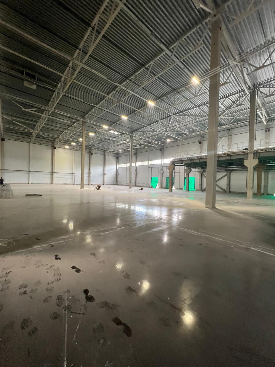 Высота потолка 12.5 м (до фермы).