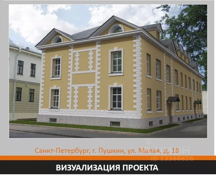 Продажа земельного участка по адресу: г. Санкт-Петербург, г. Пушкин, ул. Малая, д. 18, литера А. Вид разрешенного использования: для размещения жилого дома (жилых домов). Имеются все коммуникации. Был разработан проект строительства многоквартирного 4-этажного (подвал, 1эт., 2эт., мансарда) дома общей площадью 2200 кв. м, площадью 16 квартир — 1412,8 кв. м и получено «Разрешение на строительство», которое действовало до 15.10.2014. Земельный участок расположен в непосредственной близости от Екатерининского дворца. Собственность - физ. лицо. Градостроительный план земельного участка получен.