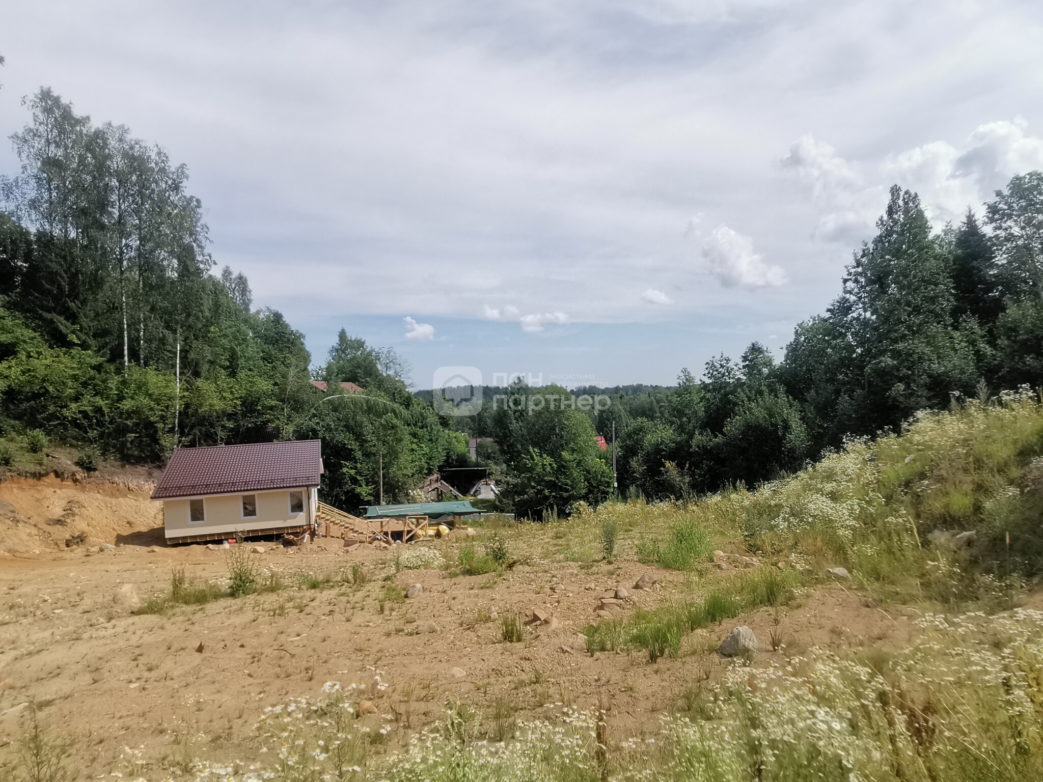 Участок рельефный, 3 яруса. удобная площадка для строительства.