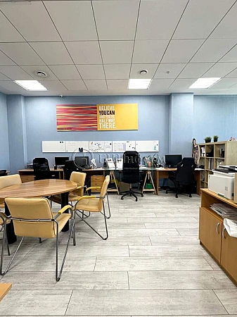 В хорошем состоянии. Выполнена качественная отделка: напольное покрытие гомогенный линолеум/ламинат, подвесной потолок типа Armstrong, стены - покраска.
