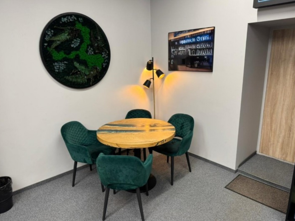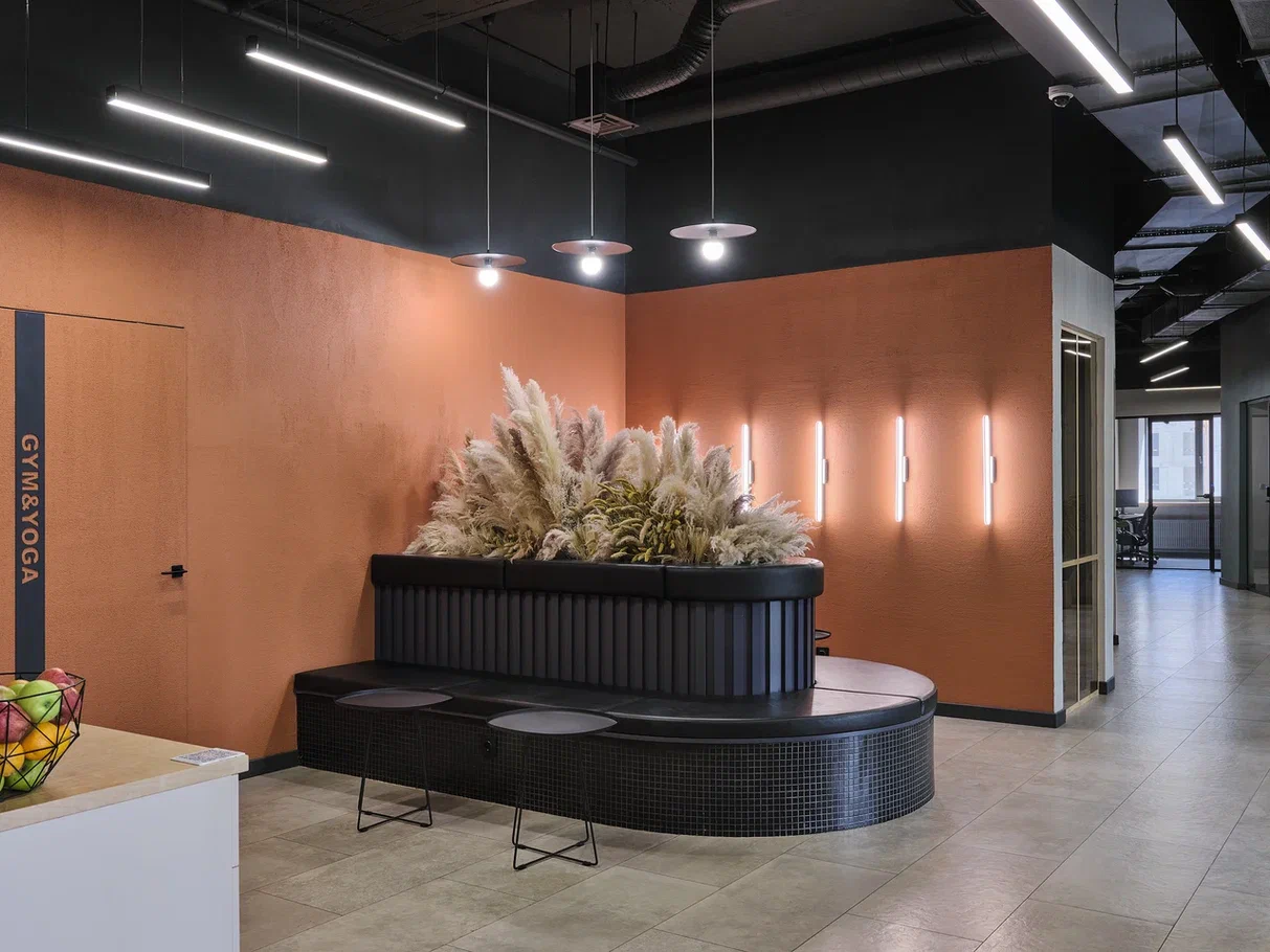 Есть оборудованная кухня, санузлы, переговорные комнаты, зона отдыха и ресепшн.