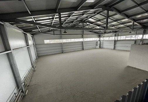 Отделка - окрашенные стены, ровный бетонный пол, кафель и потолки высотой 3,89 м.