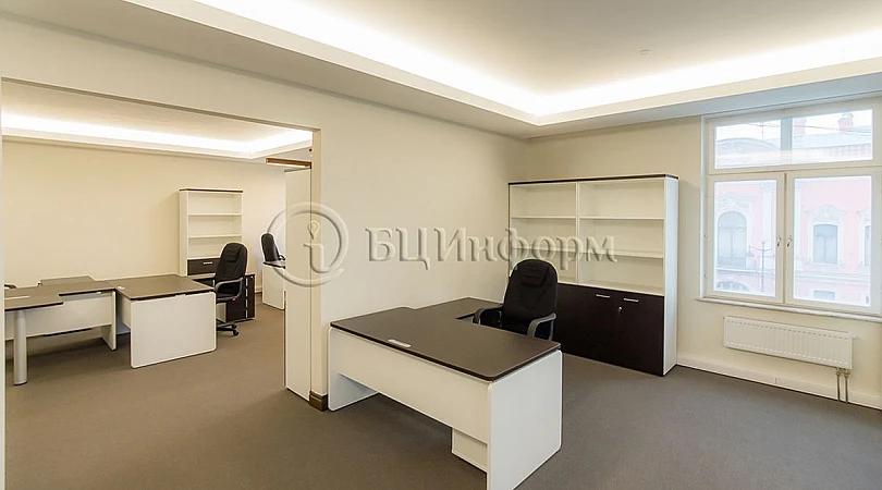 Кабинетная планировка из пяти комнат. В хорошем состоянии. Произведена качественная офисная отделка. Напольное покрытие - ковролин/ламинат. Окна - стеклопакеты. Есть санузлы. Помещения оборудованы системой кондиционирования и приточно-вытяжной вентиляцией.