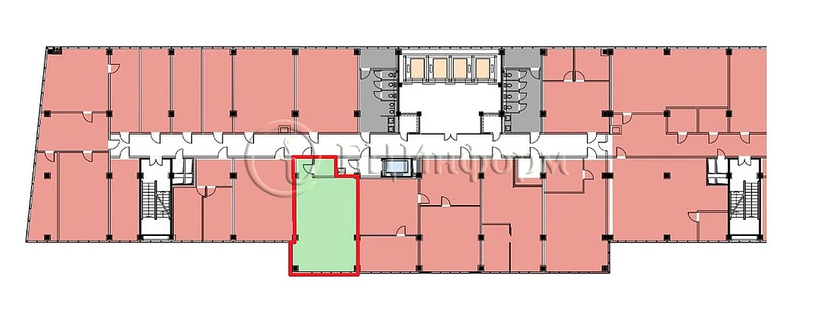 В хорошем состоянии. Произведена качественная отделка. Окна с энергосберегающими стеклопакетами, подвесные потолки с люминисцентными светильниками 600х600, на стенах оклеенный и окрашенный гипрок, деревянные входные двери, ковролин, отопительные приборы конверторного типа, приточно-вытяжная вентиляция, кондиционирование, автоматическая пожарная сигнализация и оповещение.