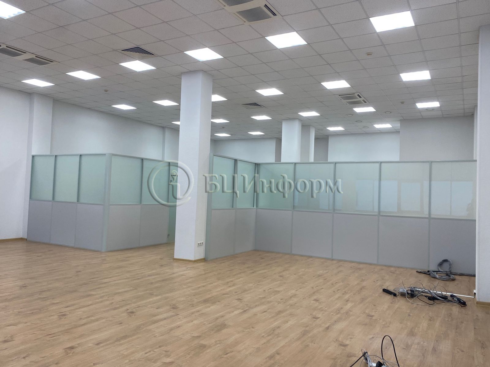 Планировка "Open space". В хорошем состоянии. Выполнена стандартная офисная отделка: потолок "Армстронг", стены - покраска, напольное покрытие - линолеум.