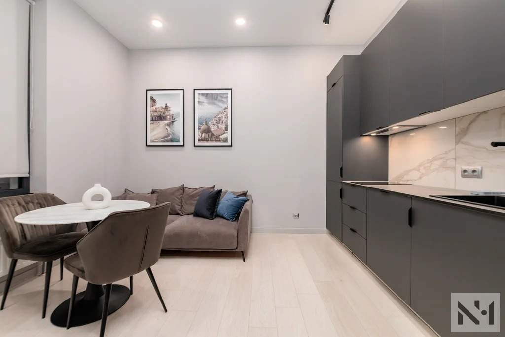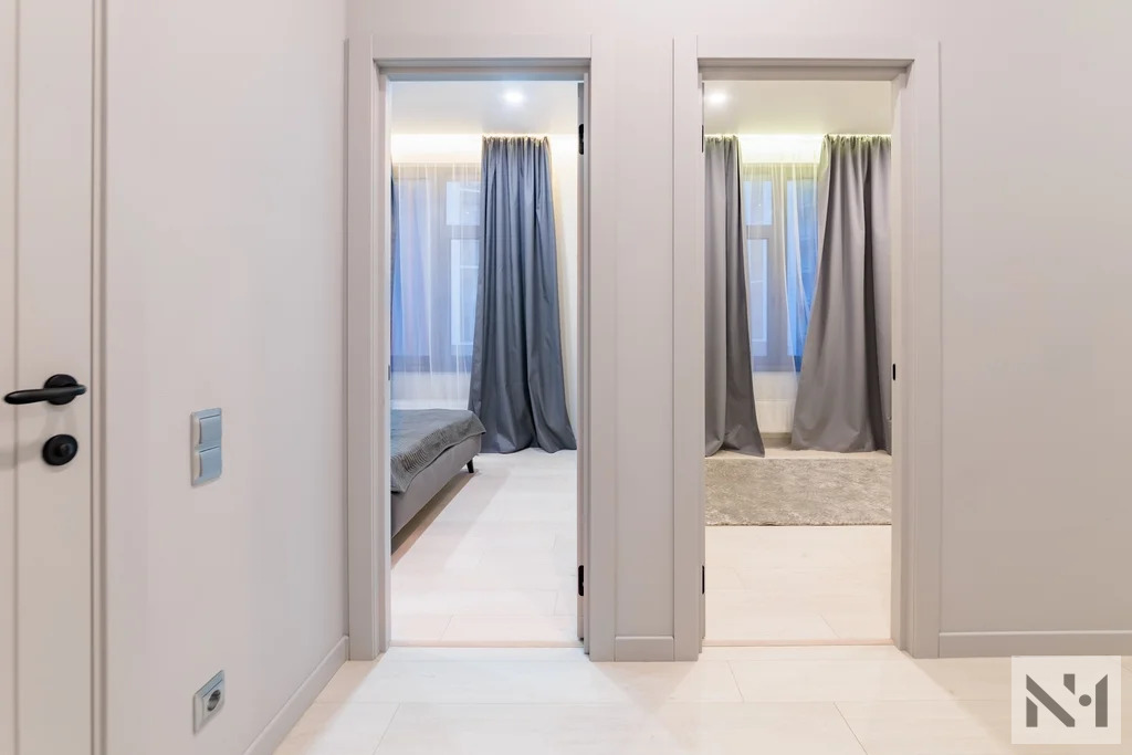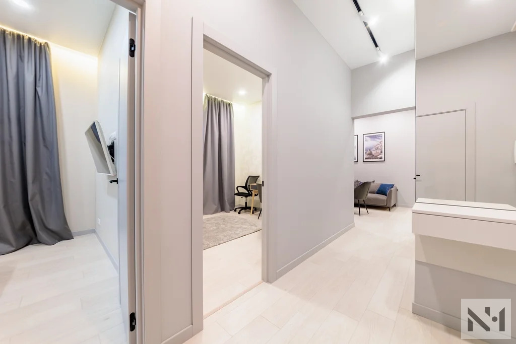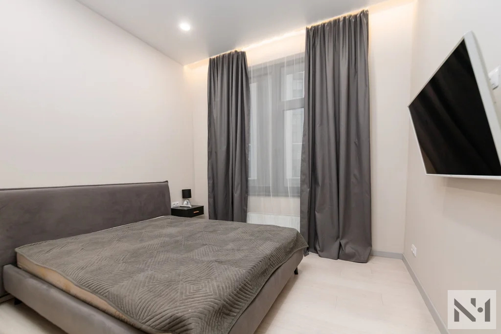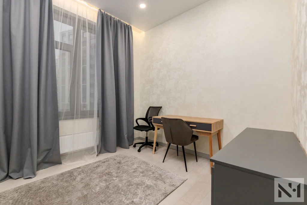 Планировка квартиры удобная и функциональная: вместительная прихожая с гардеробной, просторная кухня-гостиная, оборудованная техникой (варочная панель, духовой шкаф со встроенной микроволновой печью , вытяжка, посудомоечная машина, стиральная машина с функцией сушки, холодильник) и мебелью, две изолированные спальные комнаты с мягкой мебелью, просторный совмещенный санузел с душевой, большая лоджия с видом во внутренний двор.