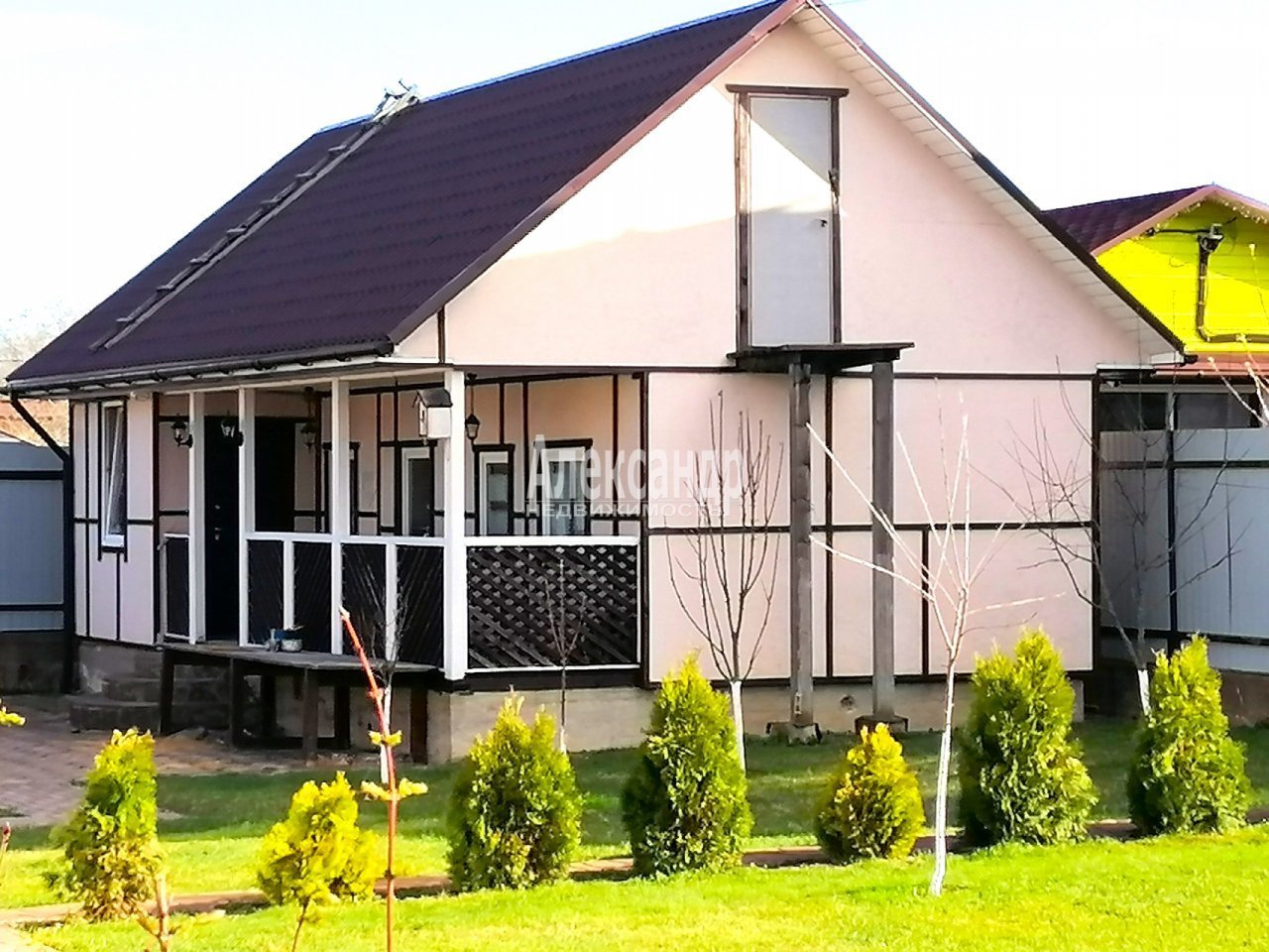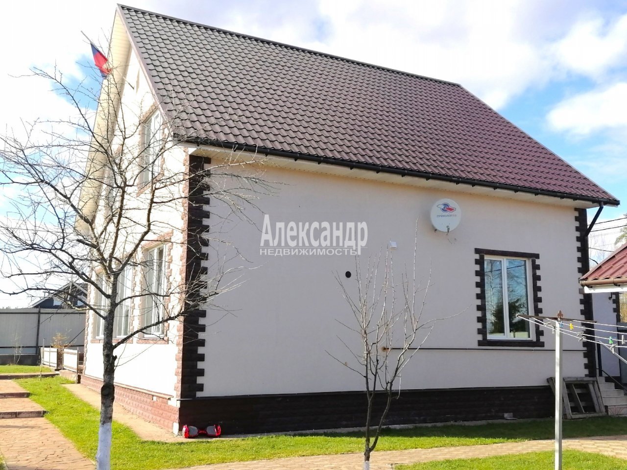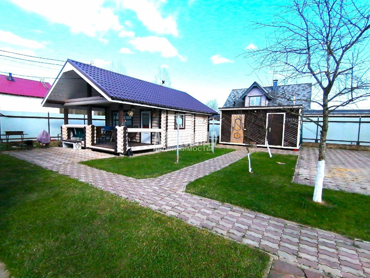 Гостевой дом 11/4 (каркасный, фундамент - лента) площадью 44 кв.м.: кухня-гостиная, санузел, спальня, прихожая, терраса. На участке баня 36 кв.м. с террасой 18 кв.м., материал постройки - калиброванный брус (диаметр 22 см). Участок в идеальном состоянии, сухой, ухоженный, ровный, выполнено мощение плиткой, газон, молодые плодоносящие деревья; есть зона барбекю. Рядом с домом оборудована небольшая детская площадка.