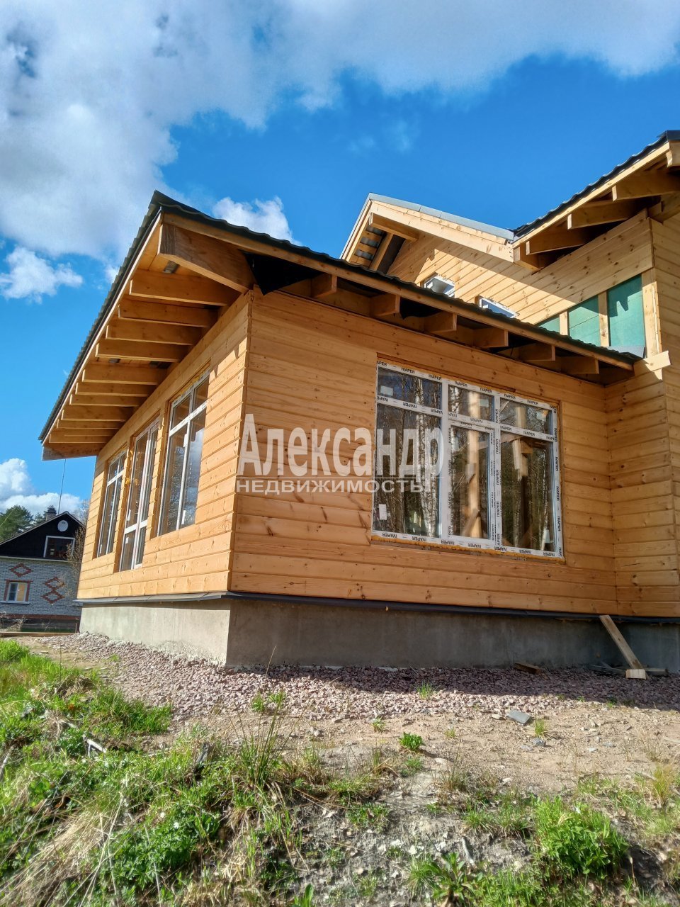Подъезд к дому удобный сразу с асфальта, справа на участке железный обустроенный вагончик с электрическим отоплением, электричество в дом проведено.В настоящее время идут внутренние работы по отделки.