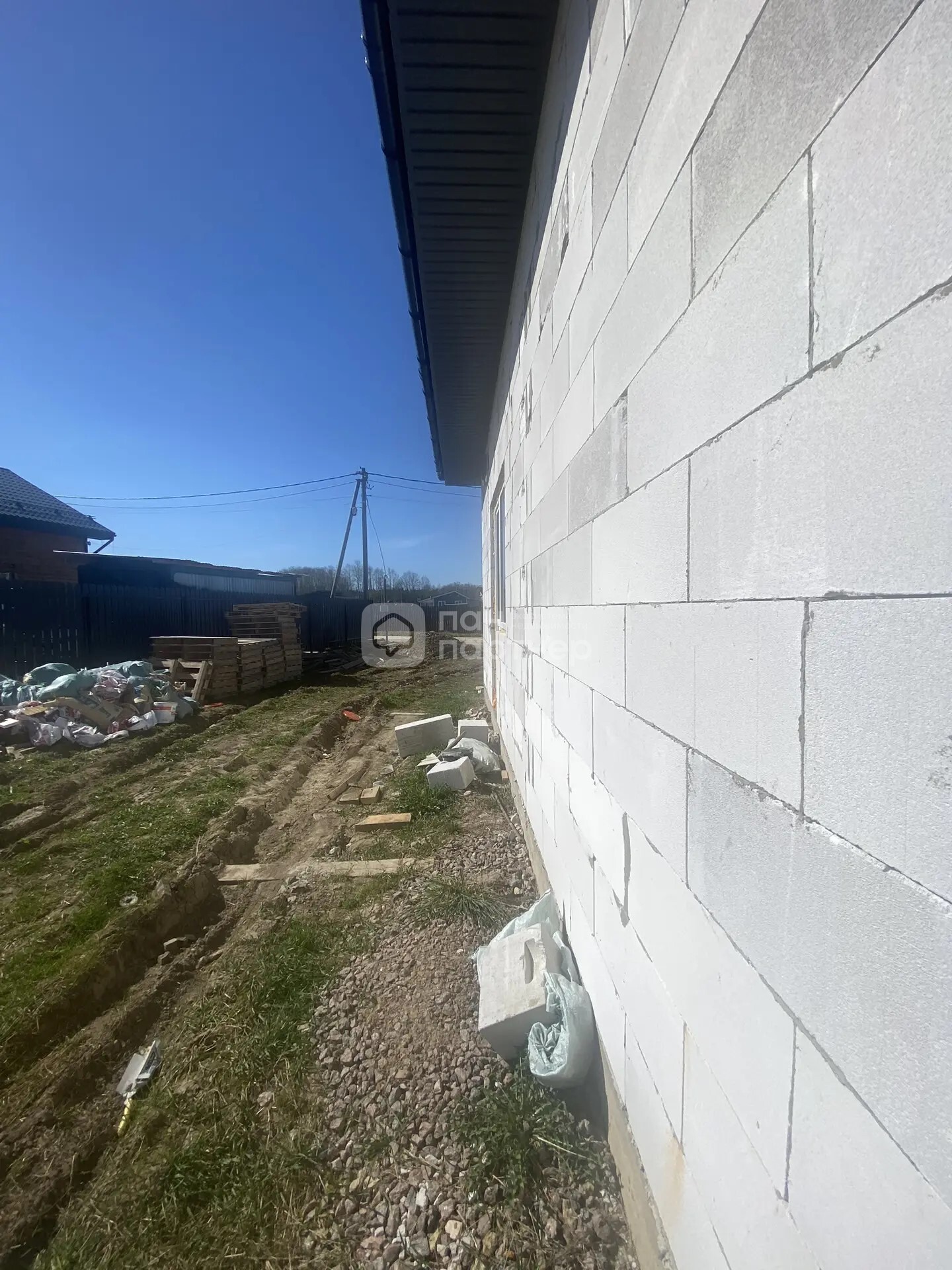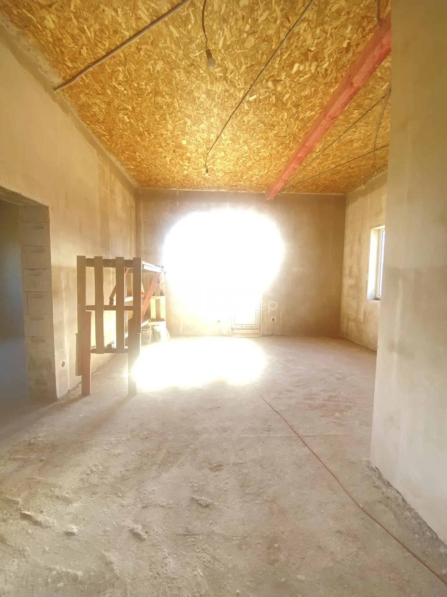 В доме три спальни: 10, 13 и 16 м2 плюс кухня-гостиная 30 м2 с выходом на террасу, совмещенный санузел, хозблок и гардеробная. Дом с предчистовой отделкой. Стены обшиты гипроком, во всех комнатах установлены двухкамерные стеклопакеты. Входная дверь металлическая. В санузле частично установлена сантехника.