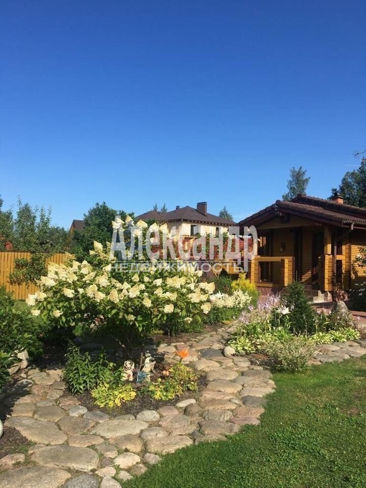 Участок ровный, сухой за счет системы дренажа, с ландшафтным дизайном, кованой оградой, брусчаткой из ладожского булыжника, декоративными, цветущими и плодовыми растениями.