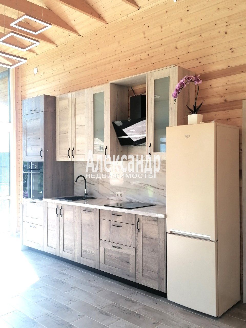 1700230 Предлагаем приобрести современный одноэтажный жилой дом площадью 90 м2, 2024 года постройки, на ровном разработанном участке ИЖС площадью 837 кв.м., в благоустроенном коттеджном посёлке комфорт-класса `Нурмиярви`. Дом построен из современных материалов в стиле Барн Хаус. Это набирающий обороты архитектурный тренд загородного строительства, который начинает завоёвывать отечественный рынок недвижимости. Особенности постройки нашего дома: прямоугольная конструкция; острая двускатная кровля, без свесов; панорамные окна; фундамент - монолитная плита, утепление стен - 200 мм, отопление - электрический котёл; удобная планировка: кухня-гостиная 28,2 м2, 2 спальни 11,3+5,7 м2, совмещённый санузел с душевой 4,2 м2, прихожая 8,6 м2, котельная 3 м2, терраса 19,9 м2.; материалы постройки - дерево и металл. На участке центральный водопровод от артезианской скважины, электричество