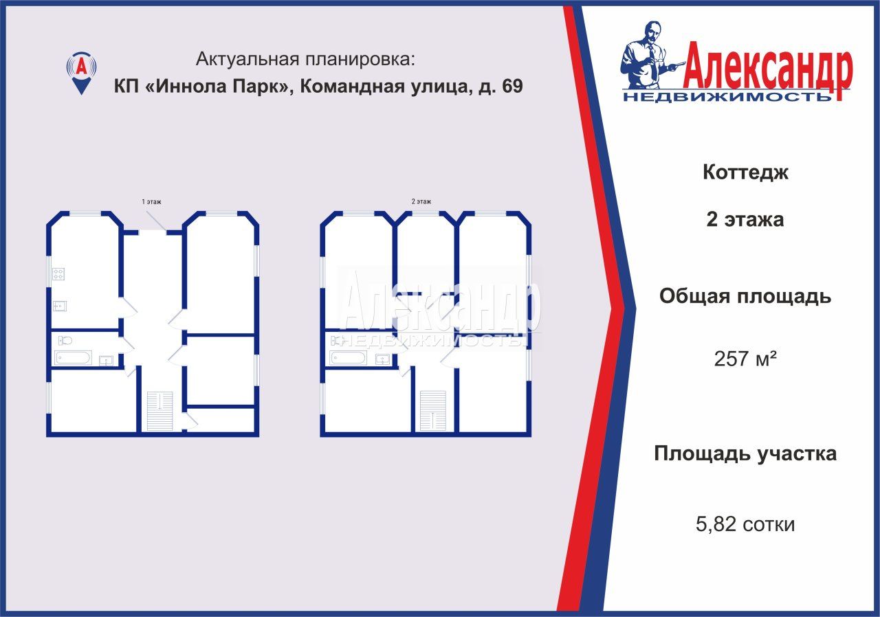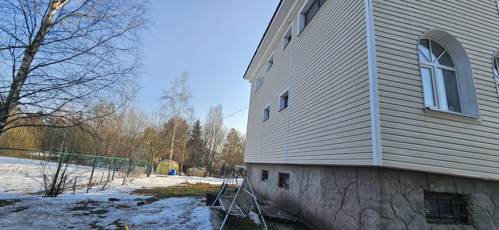 Новый 2-этажный дом 257 м² расположен в коттеджном поселке "Иннола Парк" с детской площадкой и охраняемой территорией, в 5 км от КАД со всеми коммуникациями (газ, вода, электричество).