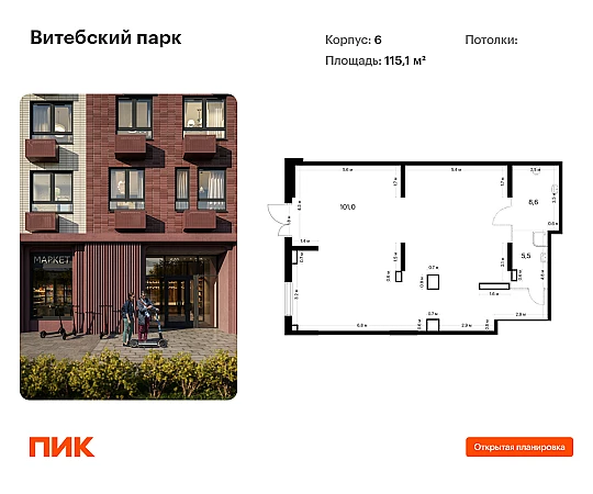 Купить ПСН 115 м² в ЖК Витебский парк