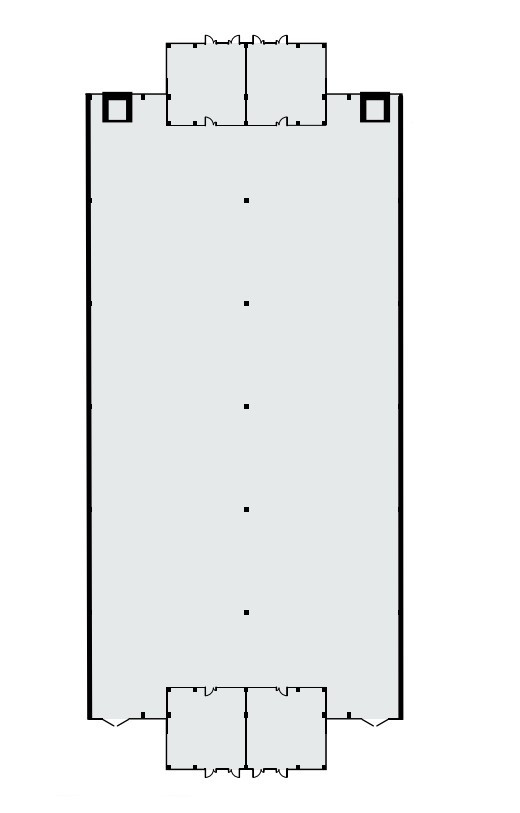 Преимущественно открытая планировка. Есть офисные и бытовые помещения. Санузлы.