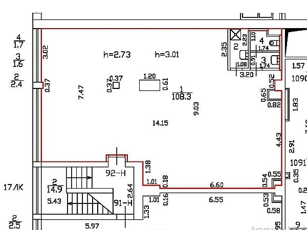 Высота потолков - 3,0 м. Электрическая мощность 5 кВт, возможно увеличение