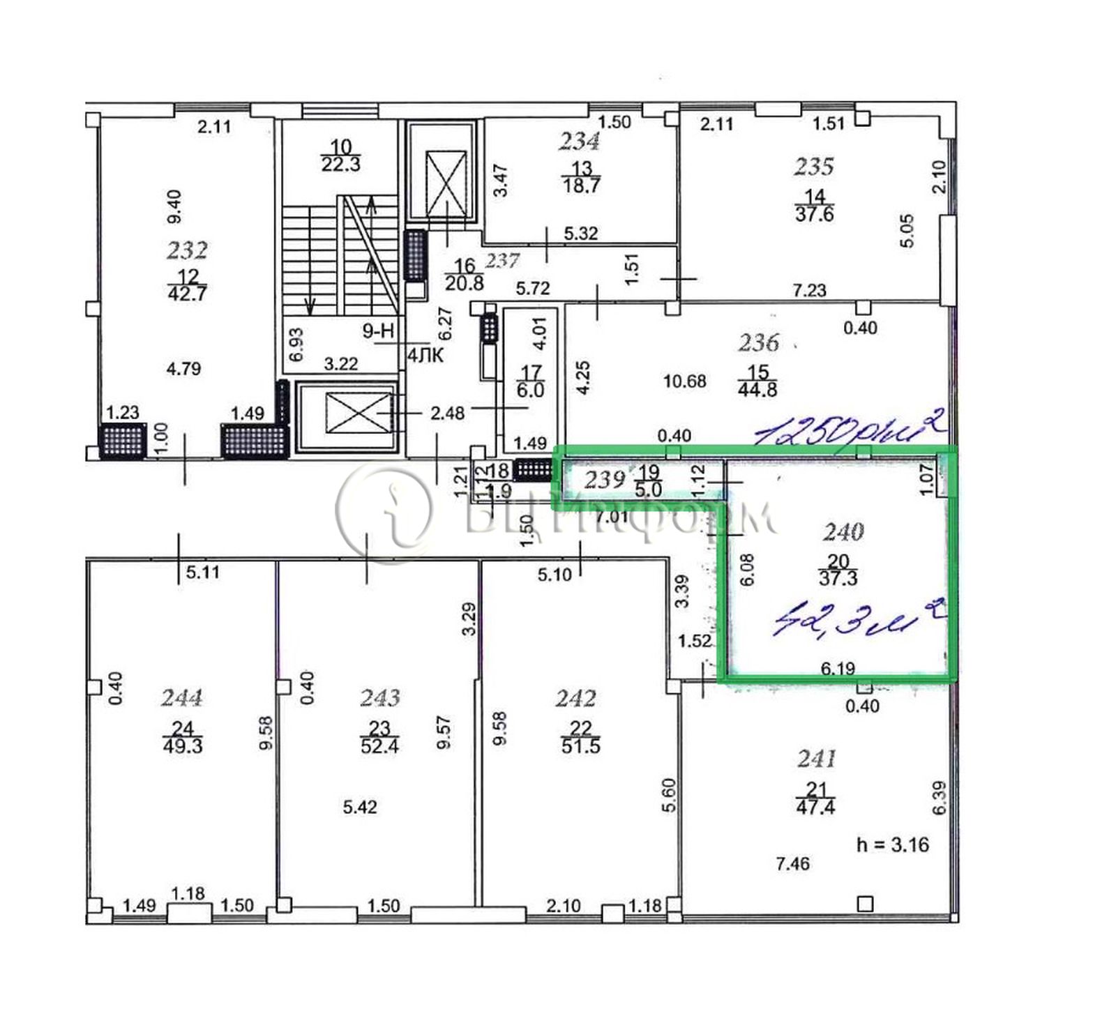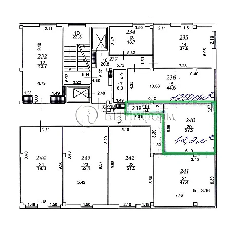 Сдается в аренду офисное помещение, площадью 42.3 м.кв.