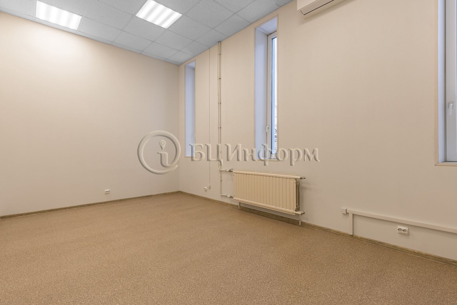 Единое пространство. Выполнена стандартная офисная отделка.