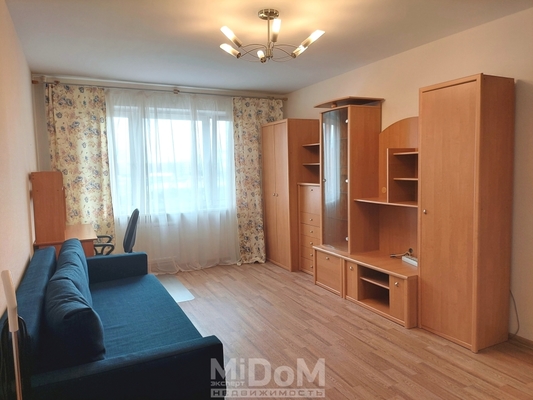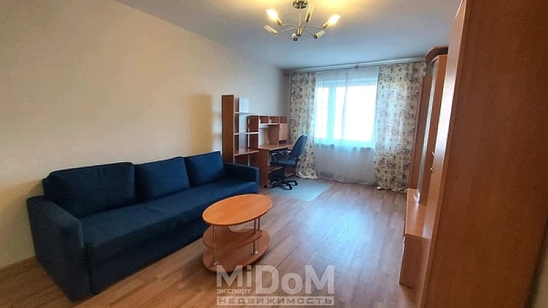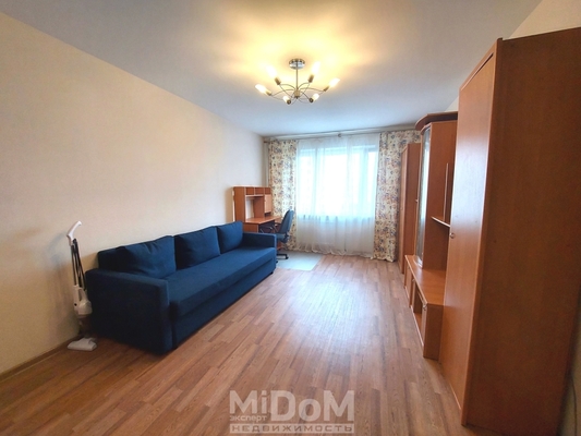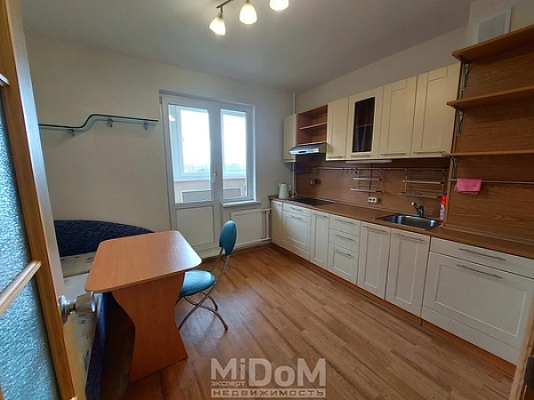 Просторная, 39 м кв, большая комната, вместительная кухня с выходом на застекленный балкон.
