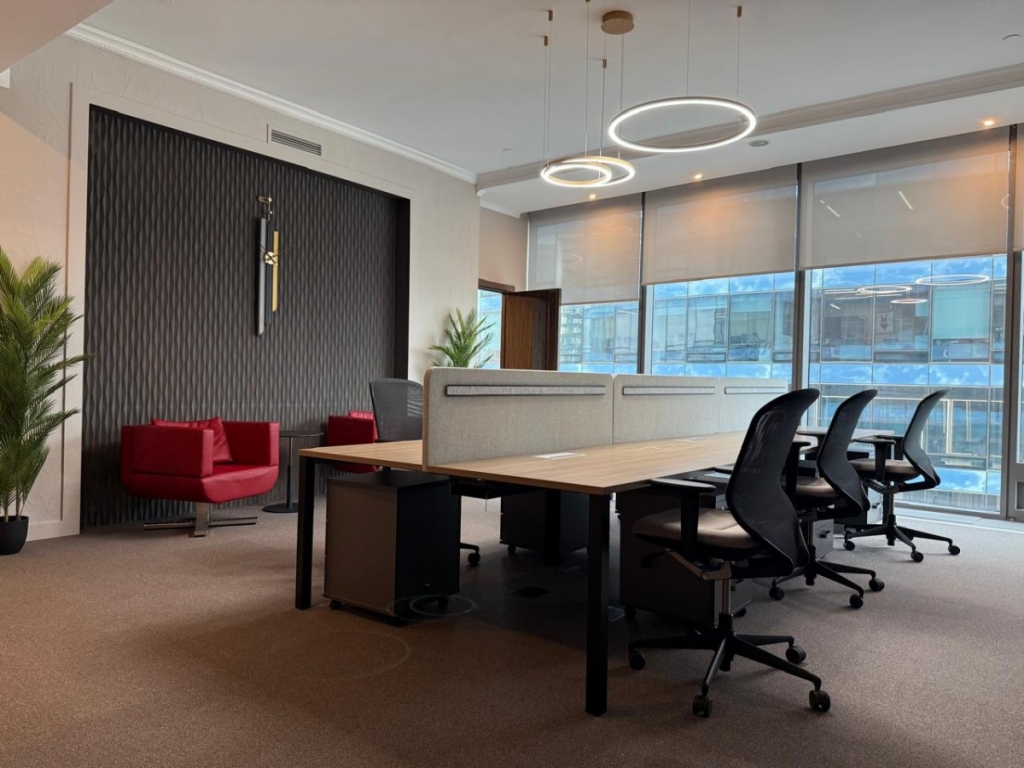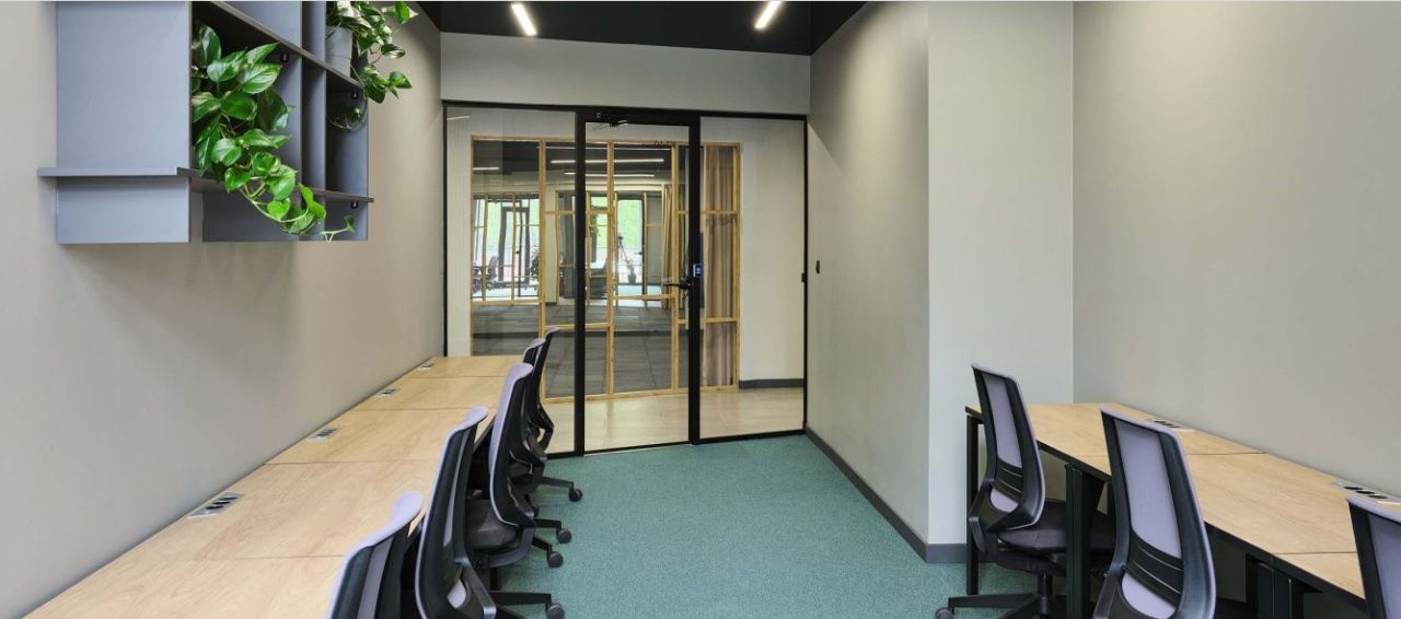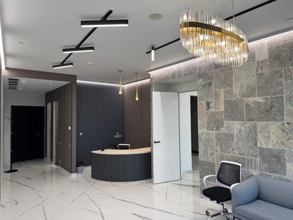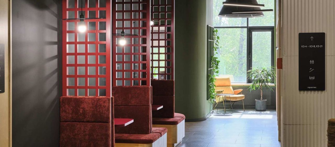 Есть оборудованная кухня, санузлы, переговорные комнаты, зона отдыха и ресепшн.