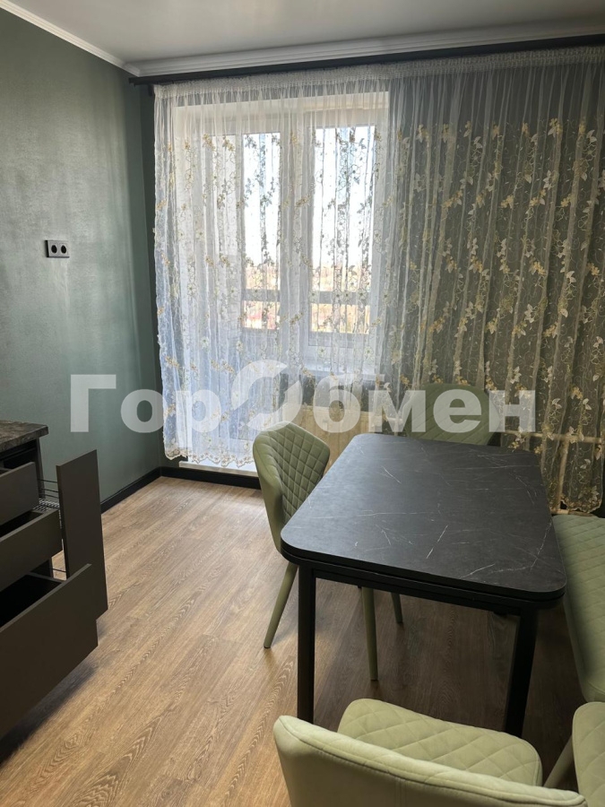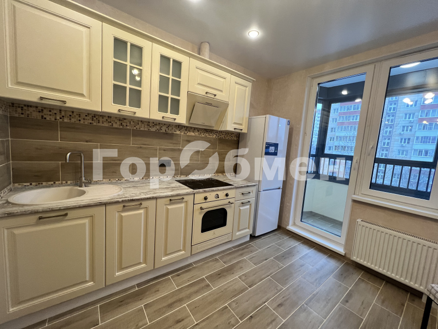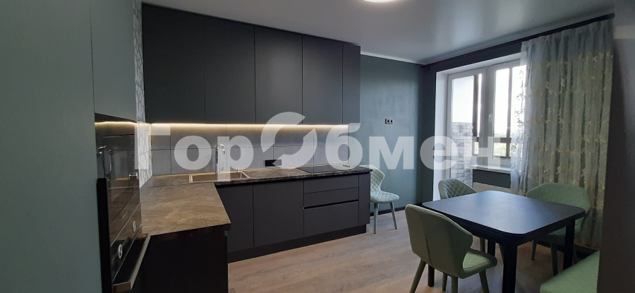 Пространстро поделено на кухню и гостинную. Выходна лоджию изгостинной.
