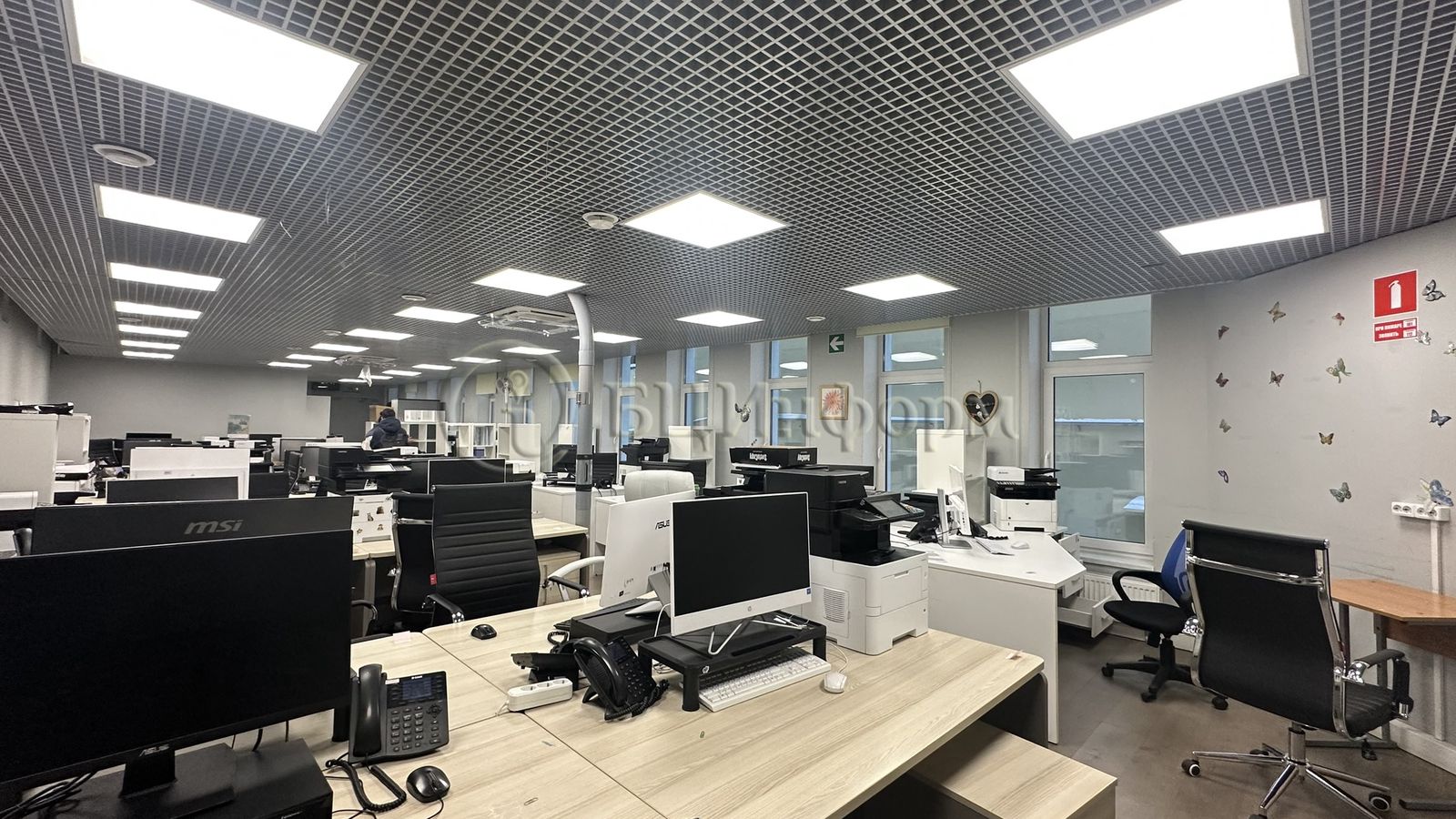 Офисные помещения занимают 1 этаж (отдельный вход), 2 - 5 эт. и 7 этаж.