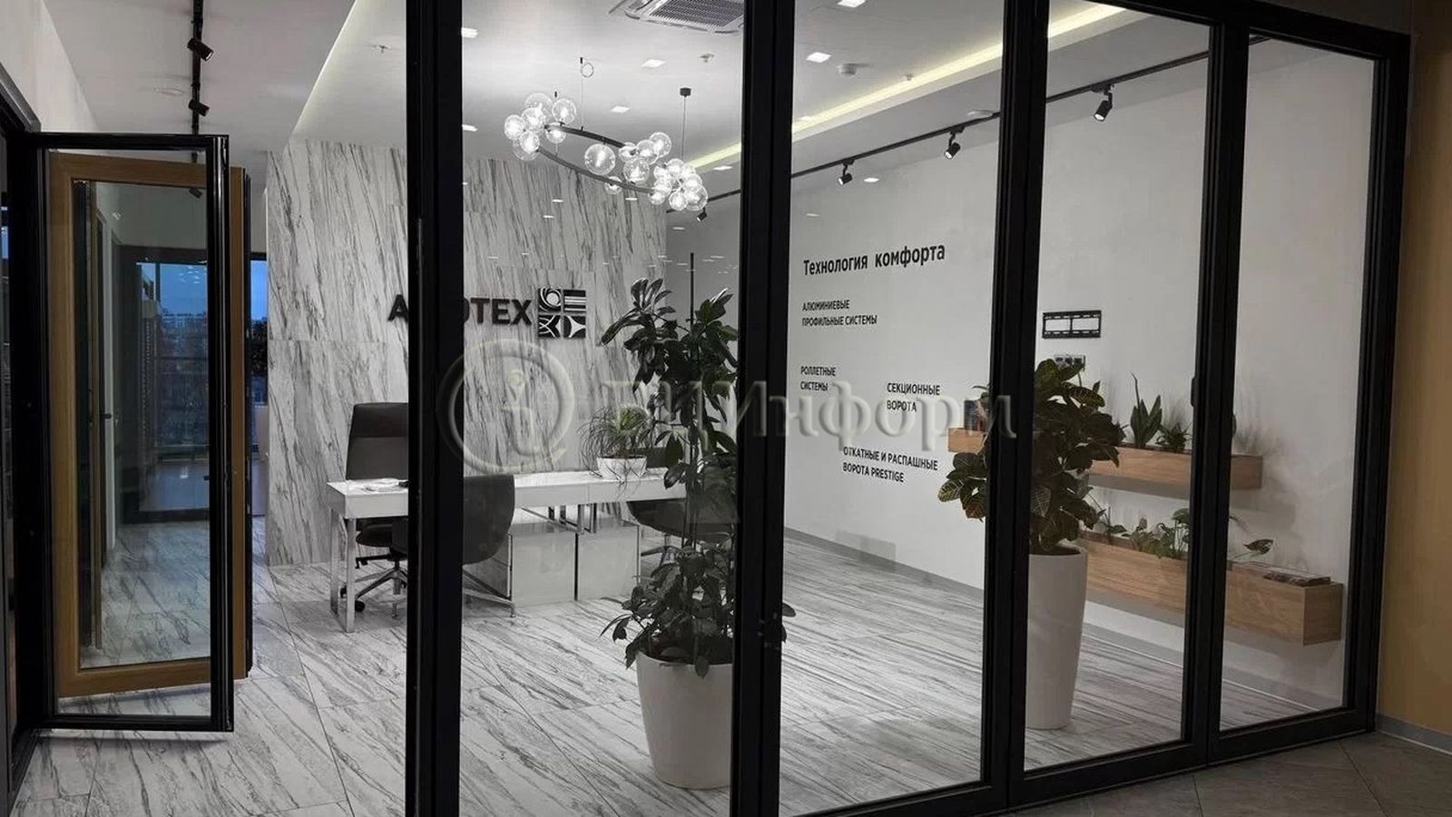 В помещении выполнена качественная отделка: потолок "Грильято", напольное покрытие - керамогранит/ламинат. Есть мебель.