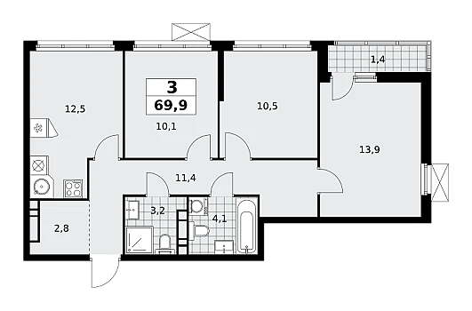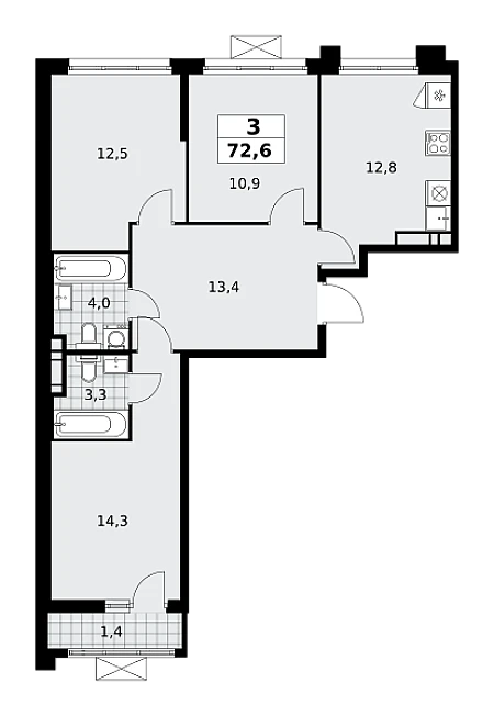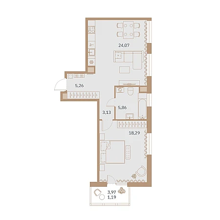 Купить 1к квартиру 57 м²