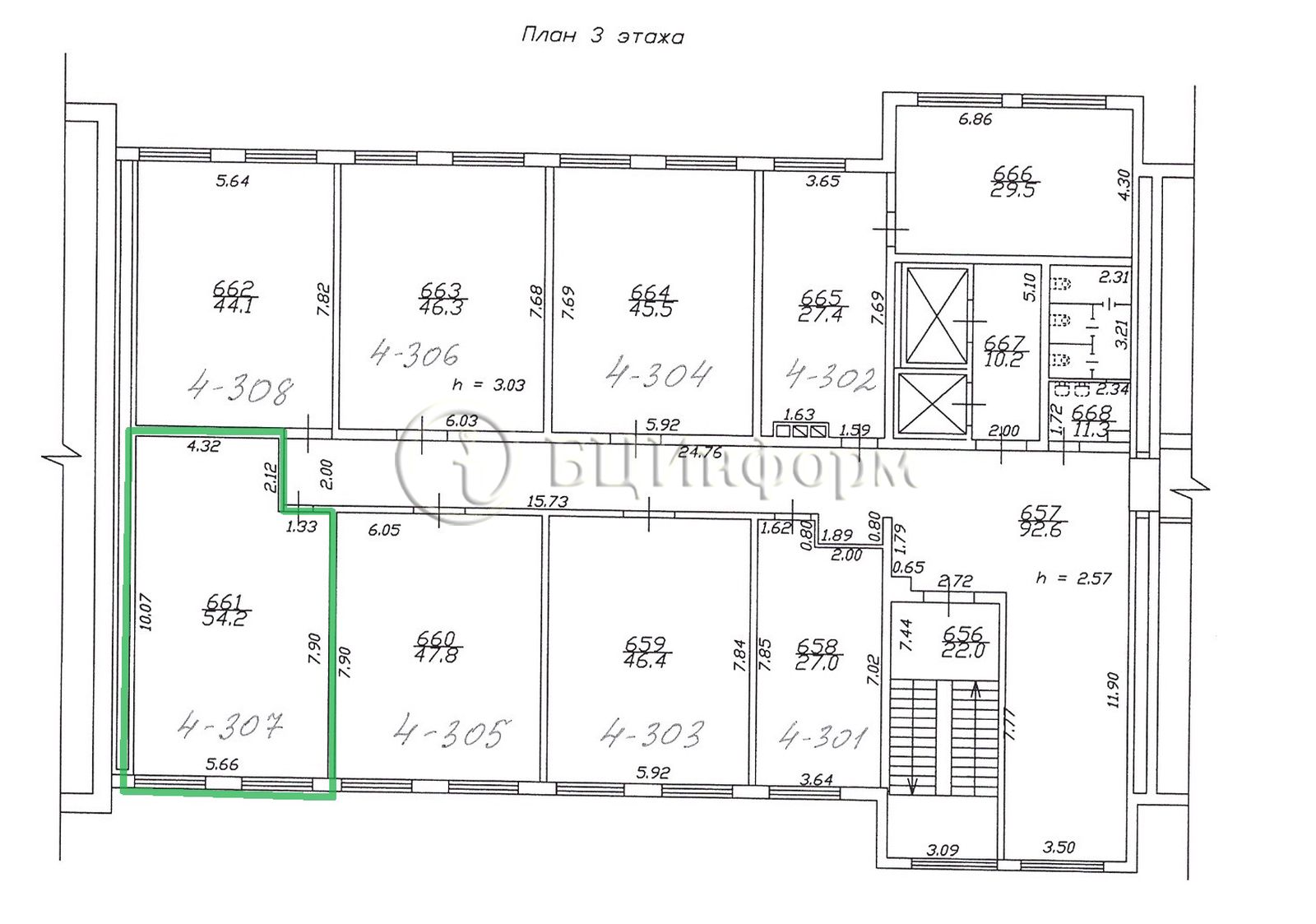Расположено на третьем этаже.