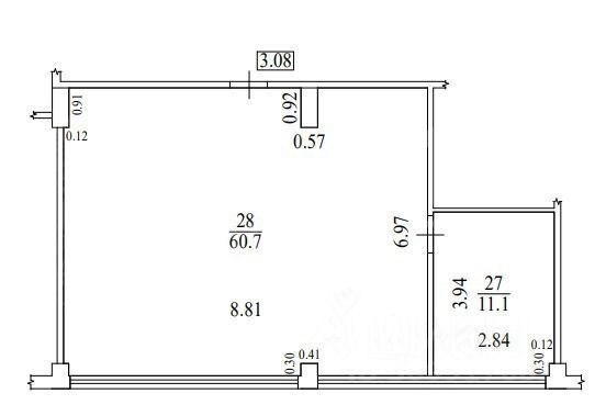 Открытая планировка. Окна по периметру помещения. Санузел.