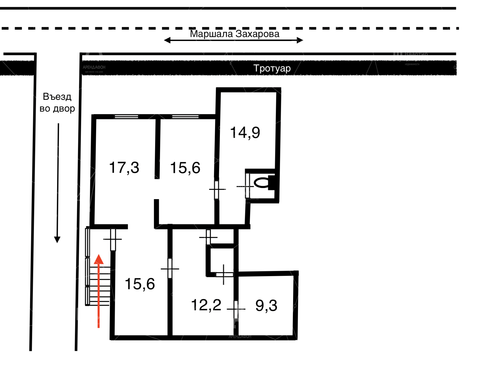 Отдельный вход со двора сразу у арки (нет пересечения с соседями), крыша и боковые части надежно защищены от дождя, снега и талых вод. Выполнена самая современная гидроизоляция всего помещения, заменена вся инженерия.