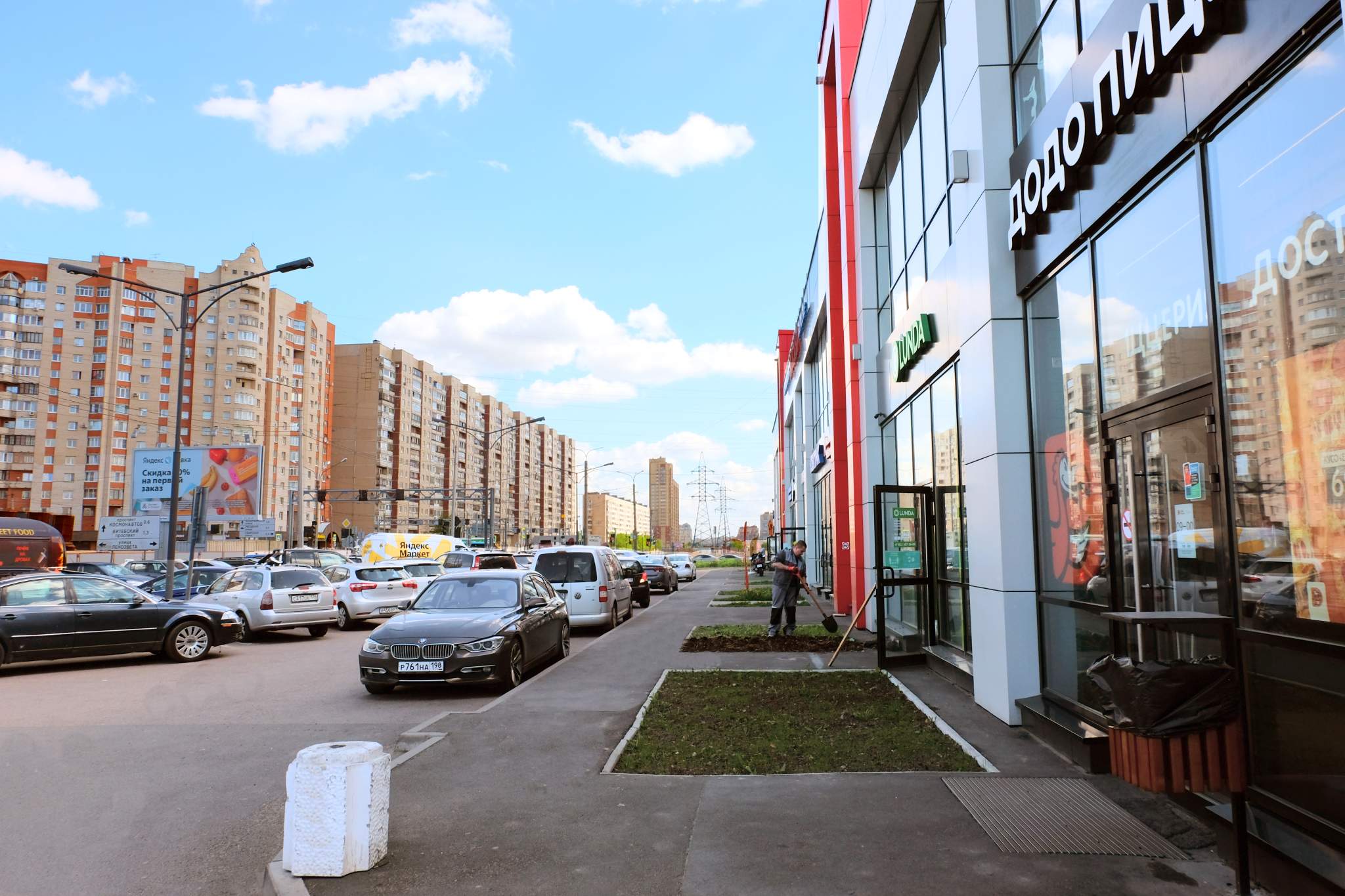 - Центр расположен на оживленном перекрестке улицы Ленсовета и Дунайского проспекта в центре плотно заселенного спального района;