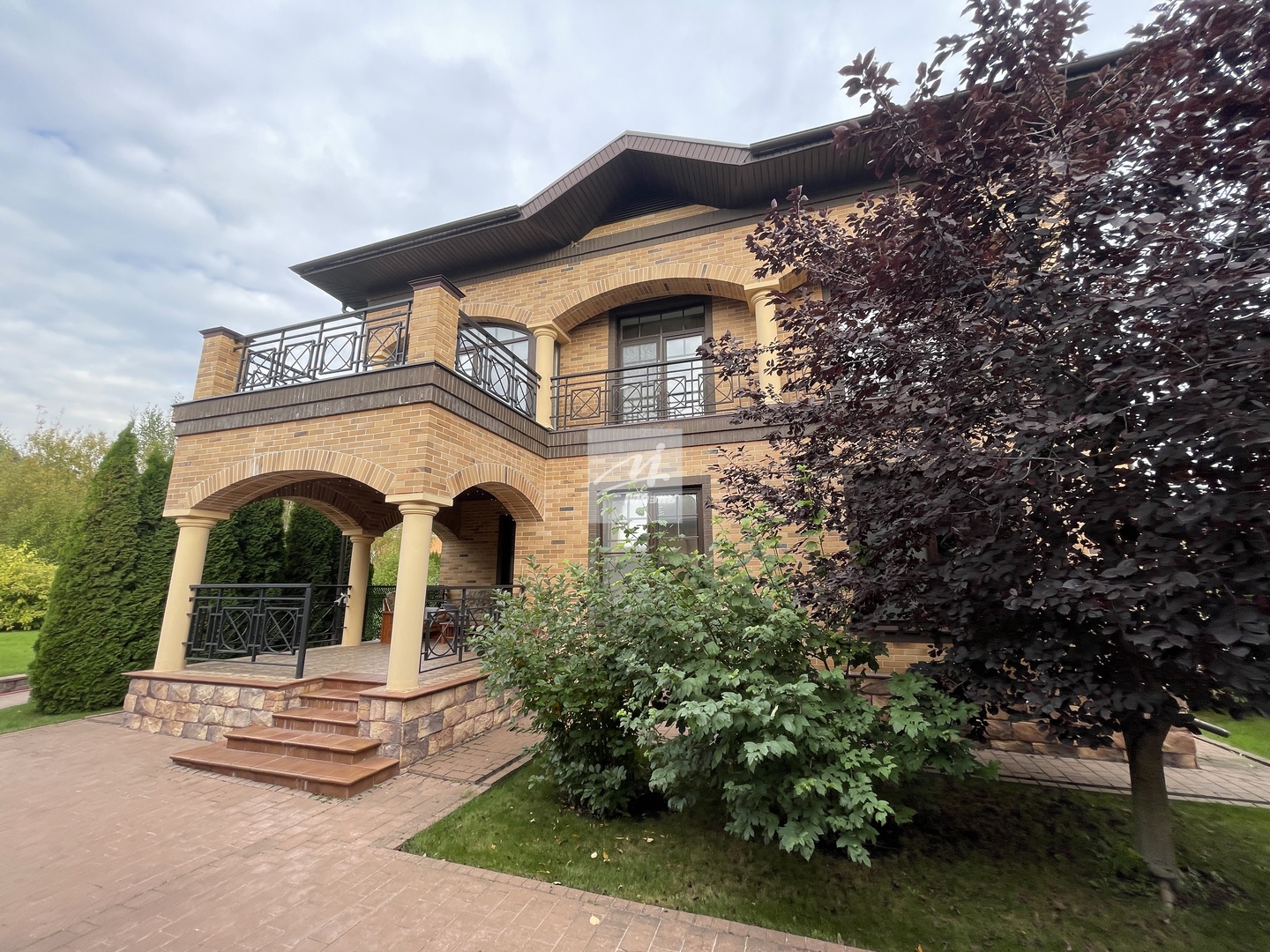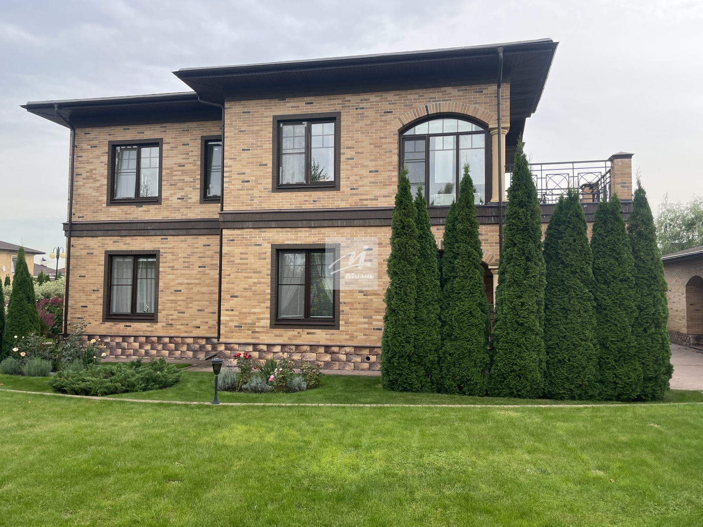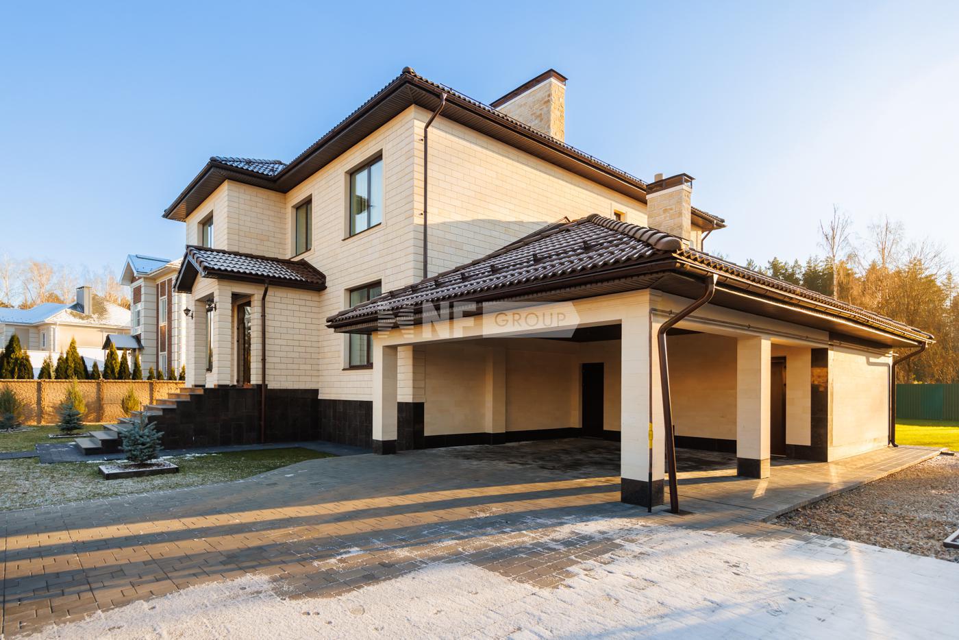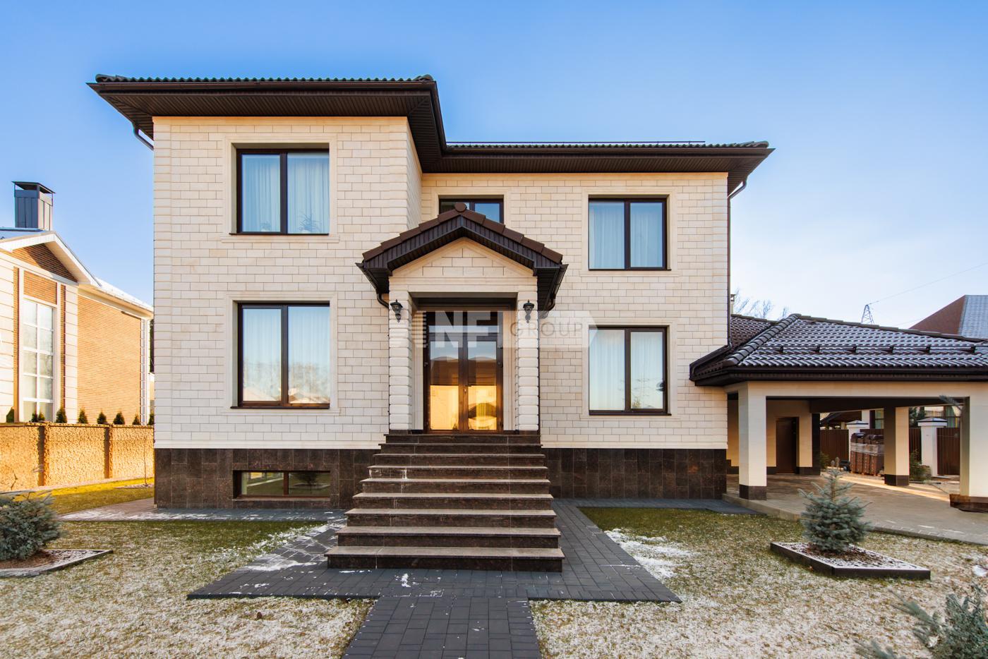 Дом построен в 2012 году по технологии несъёмной опалубки. В цокольном этаже гараж на две машины, бильярдная, кладовая, бассейн. На первом этаже прихожая, комната, зал, с камином. Зал имеет второй свет, высота потолка 6 метров. Столовая, кухня, зимний сад, лоджия 12 кв.м., котельная с одним электрическим котлом и двумя газовыми котлами (один для дома, второй, для бассейна), сауна, душ, туалет. На втором этаже три спальни, гардеробная, ванная комната 26 кв.м., с гидромассажной ванной и душем, лоджия, с гимнастическими тренажёрами. На первом этаже один туалет, на втором два и один туалет в мансарде. Мансарда площадью 49 кв.м. В дом ведут три входа: парадный, второй - хозяйственный, с противоположной стороны и третий, через гараж, в цокольном этаже. Дом расположен на участке 90 соток.